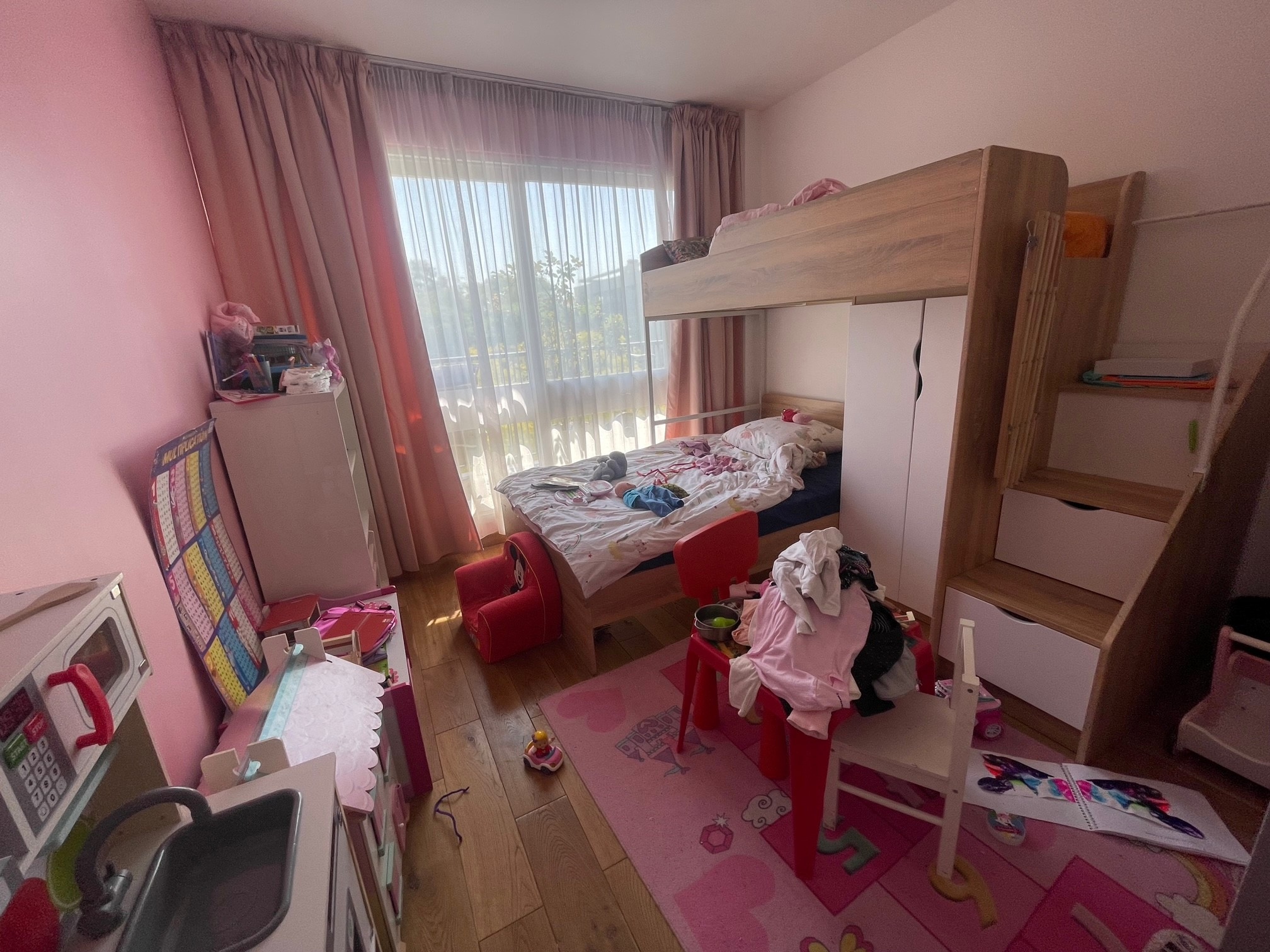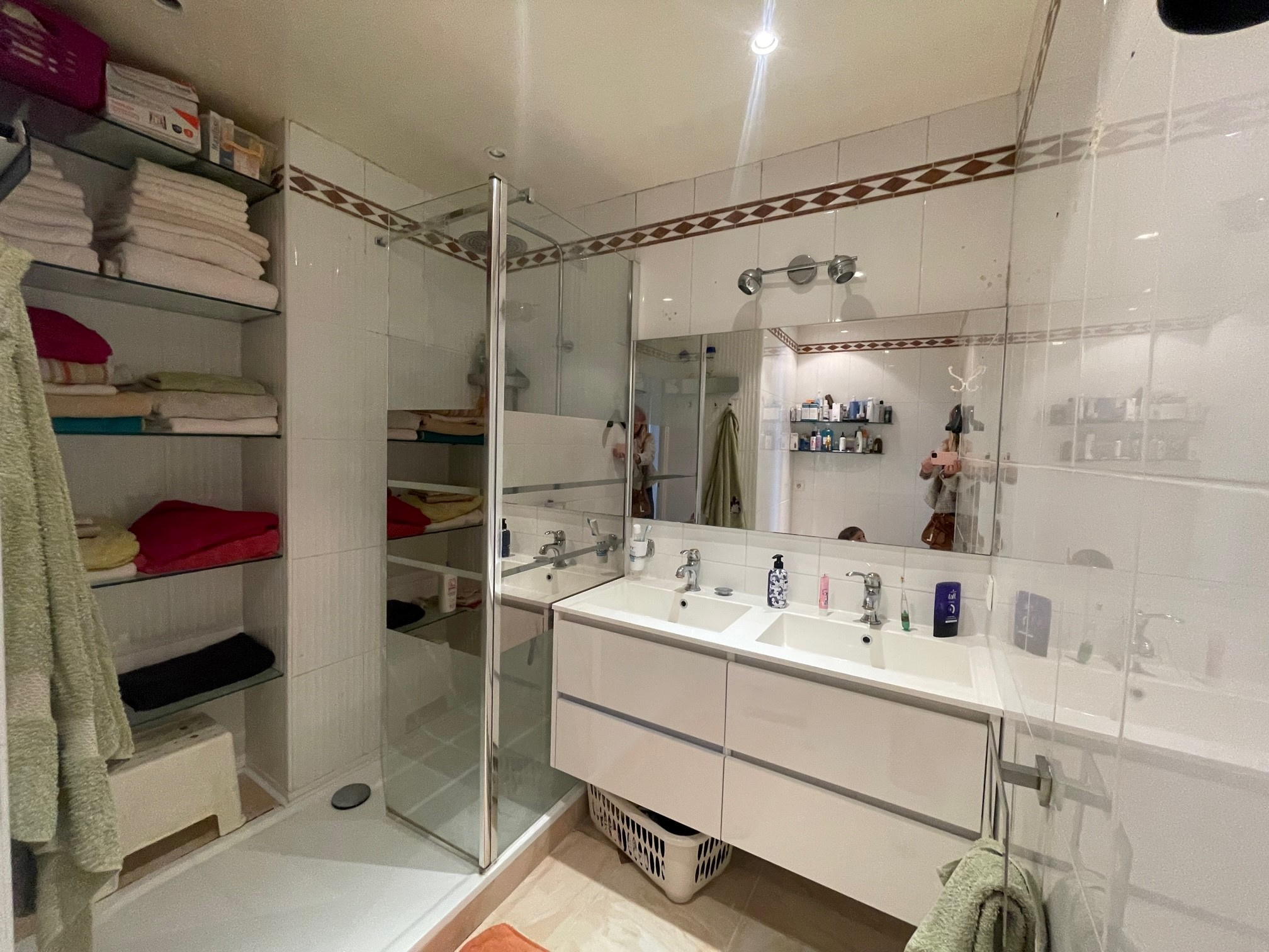 d'une entrée desservant un vaste séjour prolongé par une loggia vitrée intégrée donnant sur le balcon filant, de quatre chambres dont une suite parentale avec salle de bains et wc, un dressing, d'une salle de douche, des rangements, des wc séparés