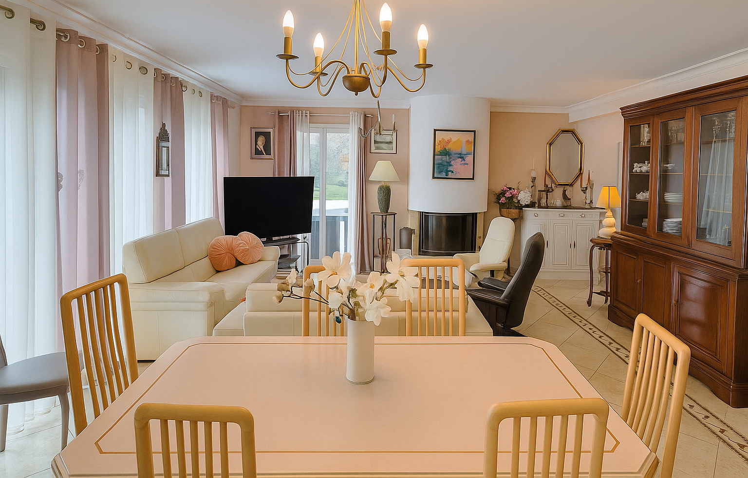 Elle vous accueille dans une belle pièce de vie avec cheminée d'environ 40 m² ouverte sur une cuisine A/E de qualité . Vie de plain pied avec une chambre, un dressing et salle de bains avec WC (suite parentale).