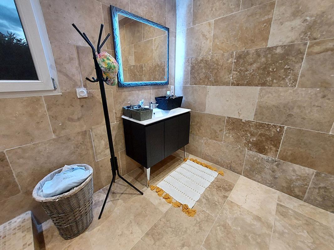 Sols en travertin, climatisation réversible, radiateurs en pierre de lave, alarme filaire, matériaux de qualités viennent parfaire cette demeure.