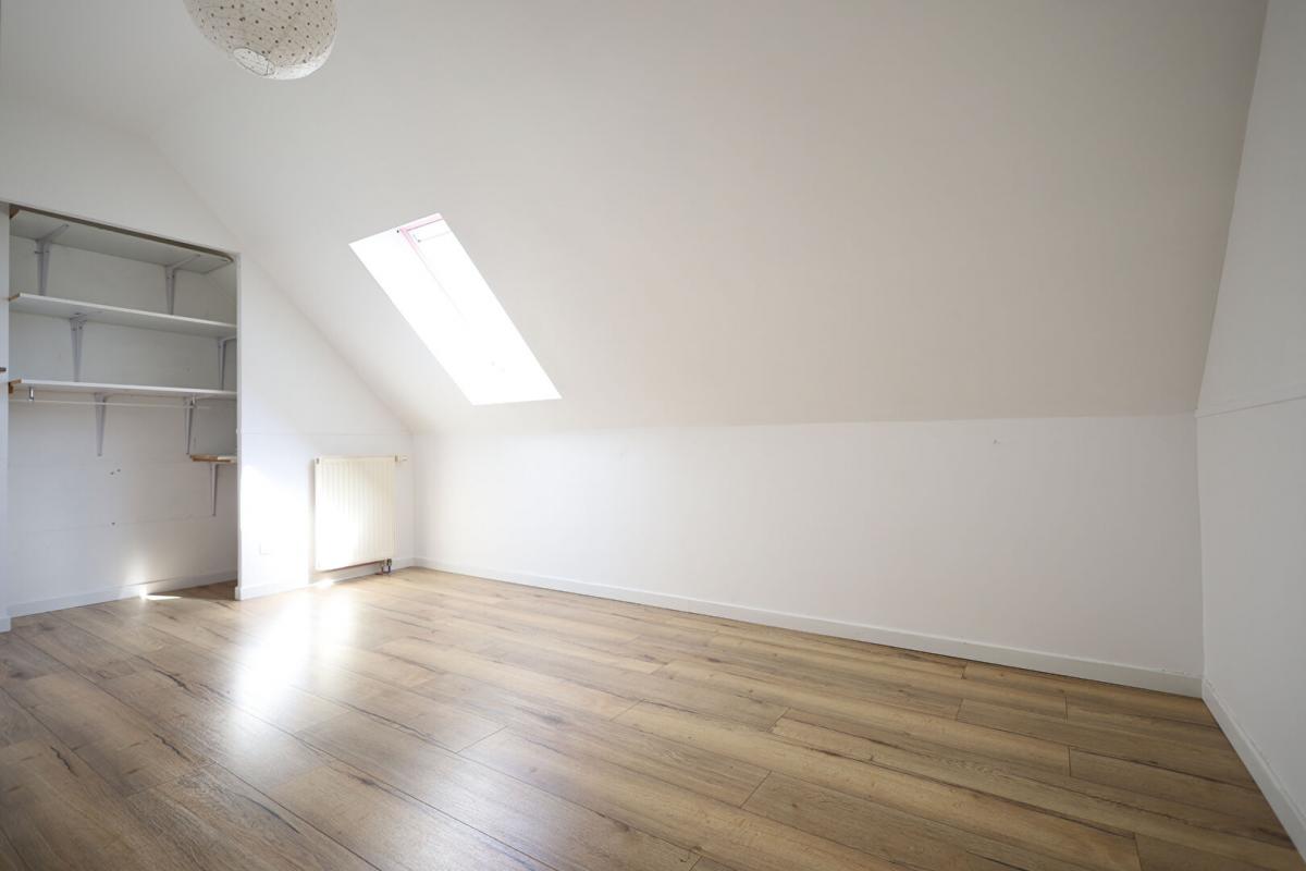 Les combles ont été aménagés en une grande chambre supplémentaire, idéale pour un espace parental, une salle de jeux ou un bureau.