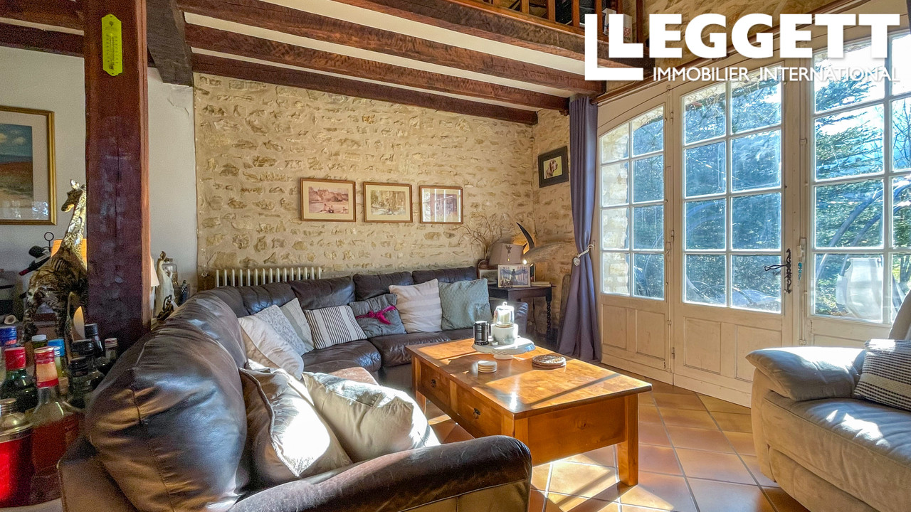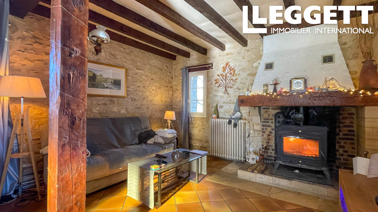 La maison en pierre compte en RDJ une cuisine et un grand séjour avec poêle à bois et de grandes portes fenêtres sur la terrasse. A l'étage, deux belles chambres, un bureau en mezzanine, une salle de douche.