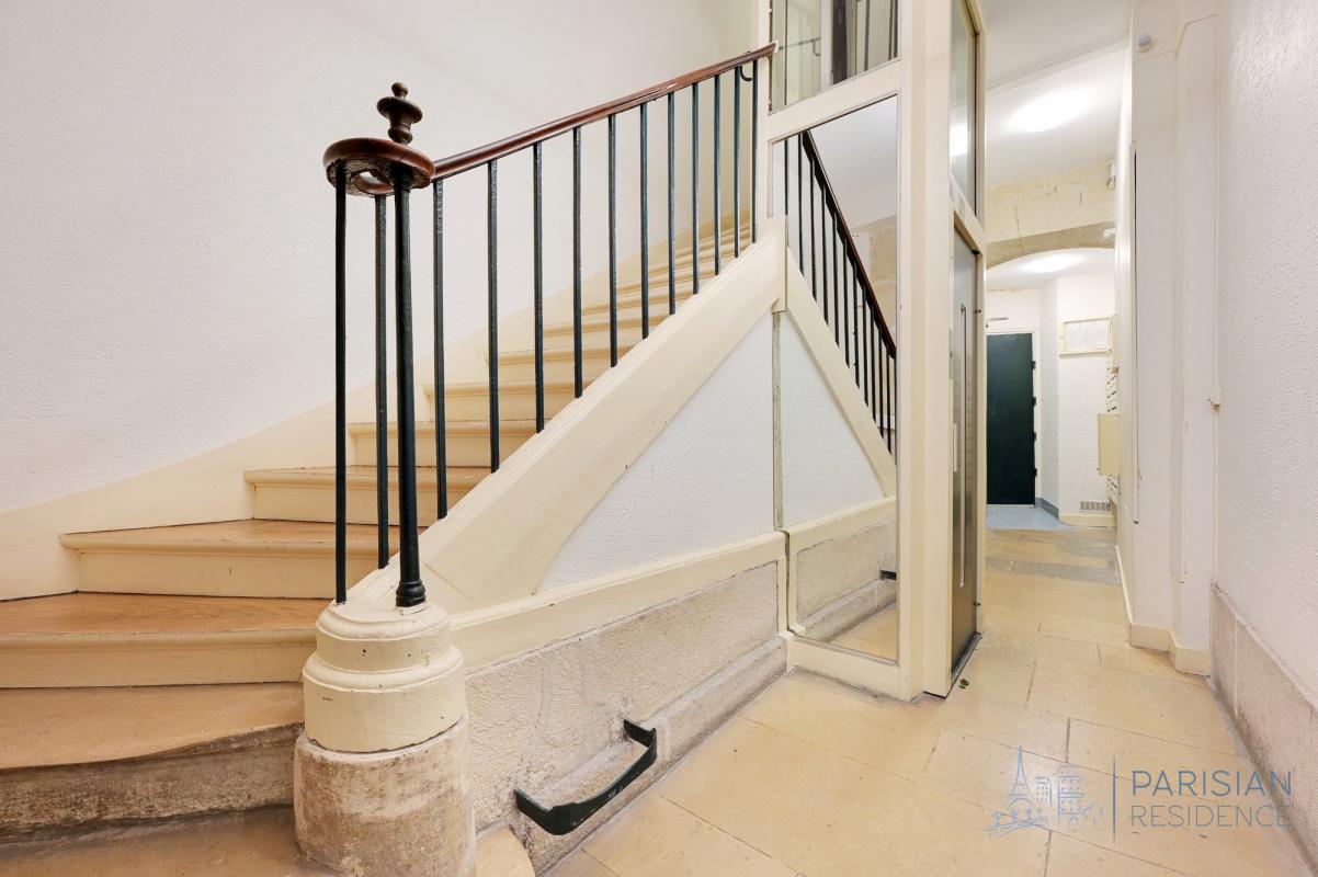 Environnement : Niché dans une rue au charme typiquement parisien, à proximité des commerces, services et transports.