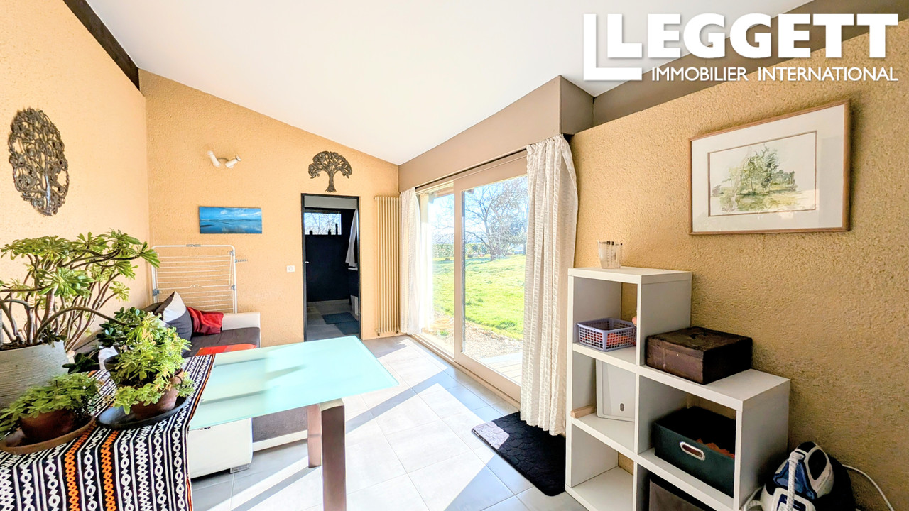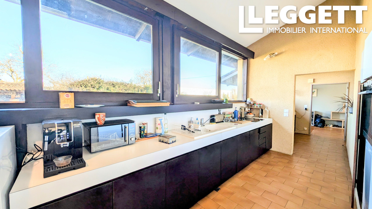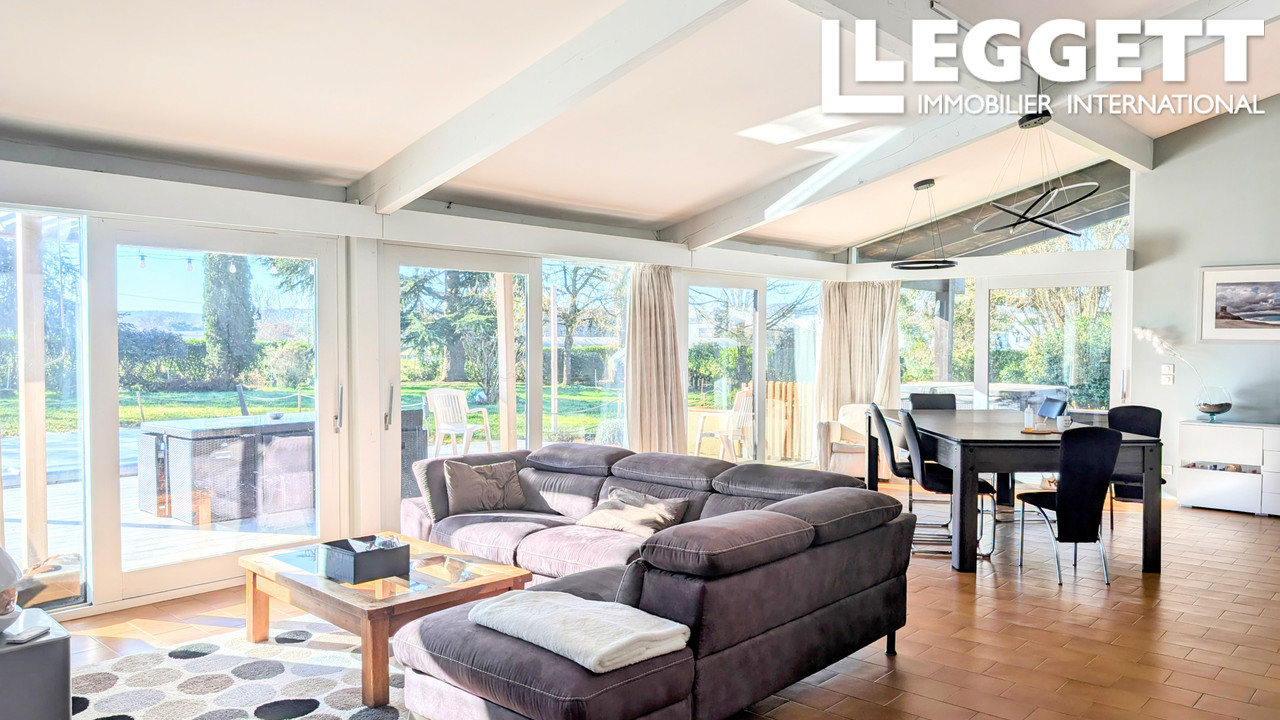 A34714SRS47 - Villa d'architecte très lumineuse avec baies vitrées donnant sur la grande terrasse plein-sud avec sa piscine toute neuve. Très grand séjour de 60m2. Garage et atelier. Située à côté du joli bastide de Damazan, à mi-chemin entre Bordeaux et Toulouse.