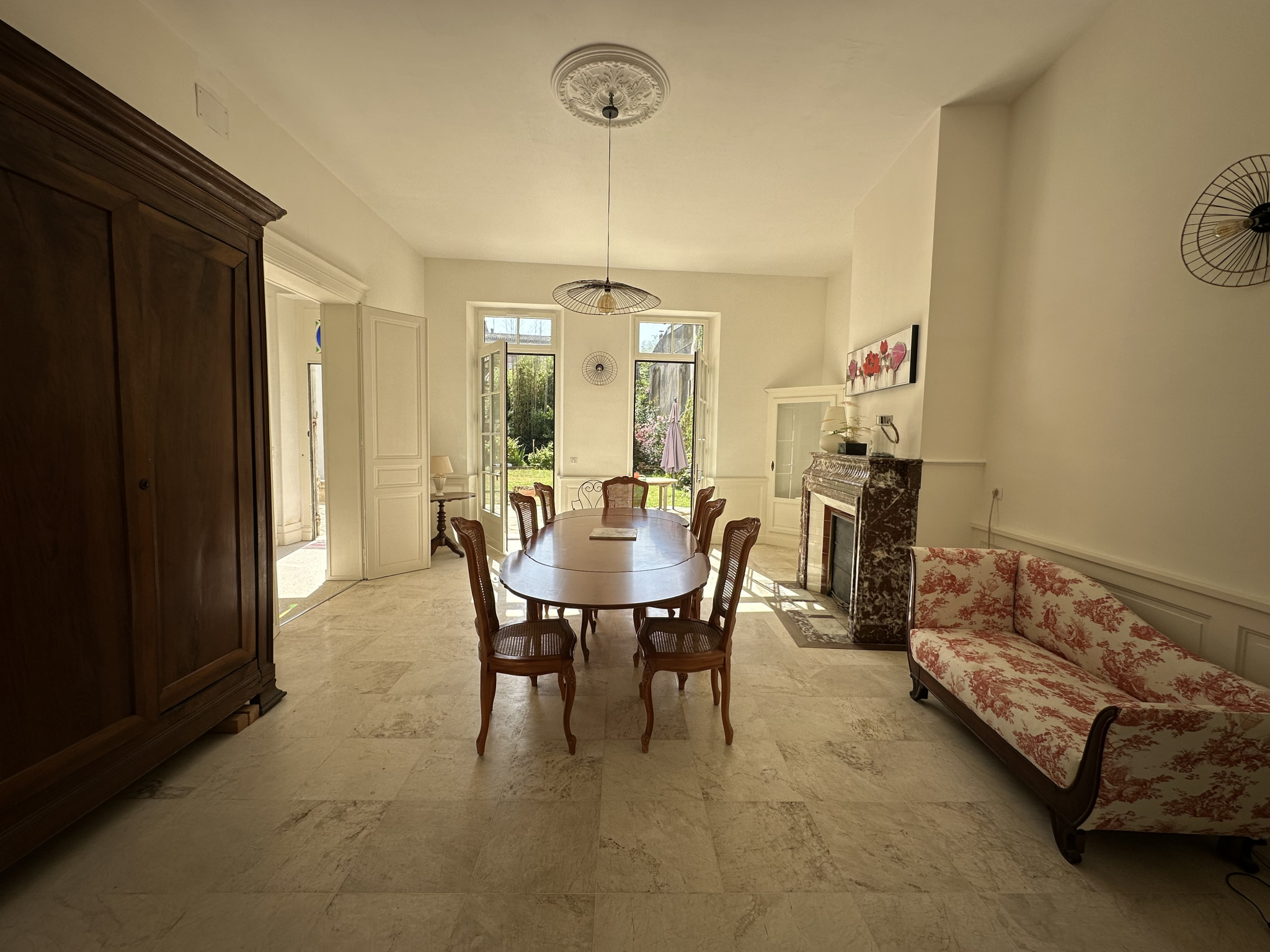 Centre ville Marmande , belle maison en pierre avec de beaux volumes dont 4 grandes chambres , un bel escalier en bois méne au palier du 1 er étage révélant 3 chambres, 1 salle de bains et un wc, un jardin spacieux invite à la détente. La toiture , le chauffage, l'électricité , la plomberie et les menuiseries ( bois intérieur alu extérieur ) ont été refaits récemment . Classe énergie:C . Plus de photos sur notre site. Pour des renseignements ou une viste , Contact direct . Francine 06 87 80 33 71 RSAC Agen 43523028900025.
