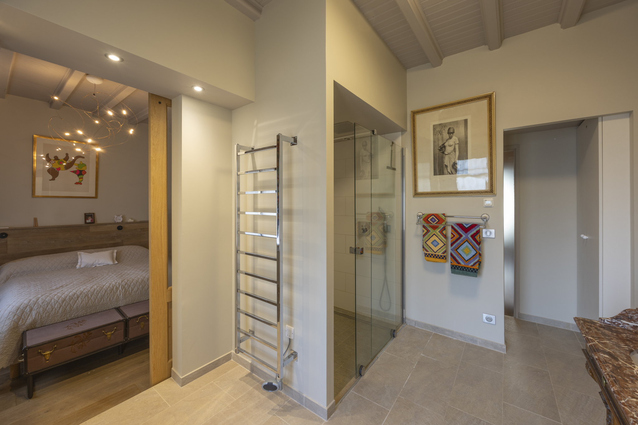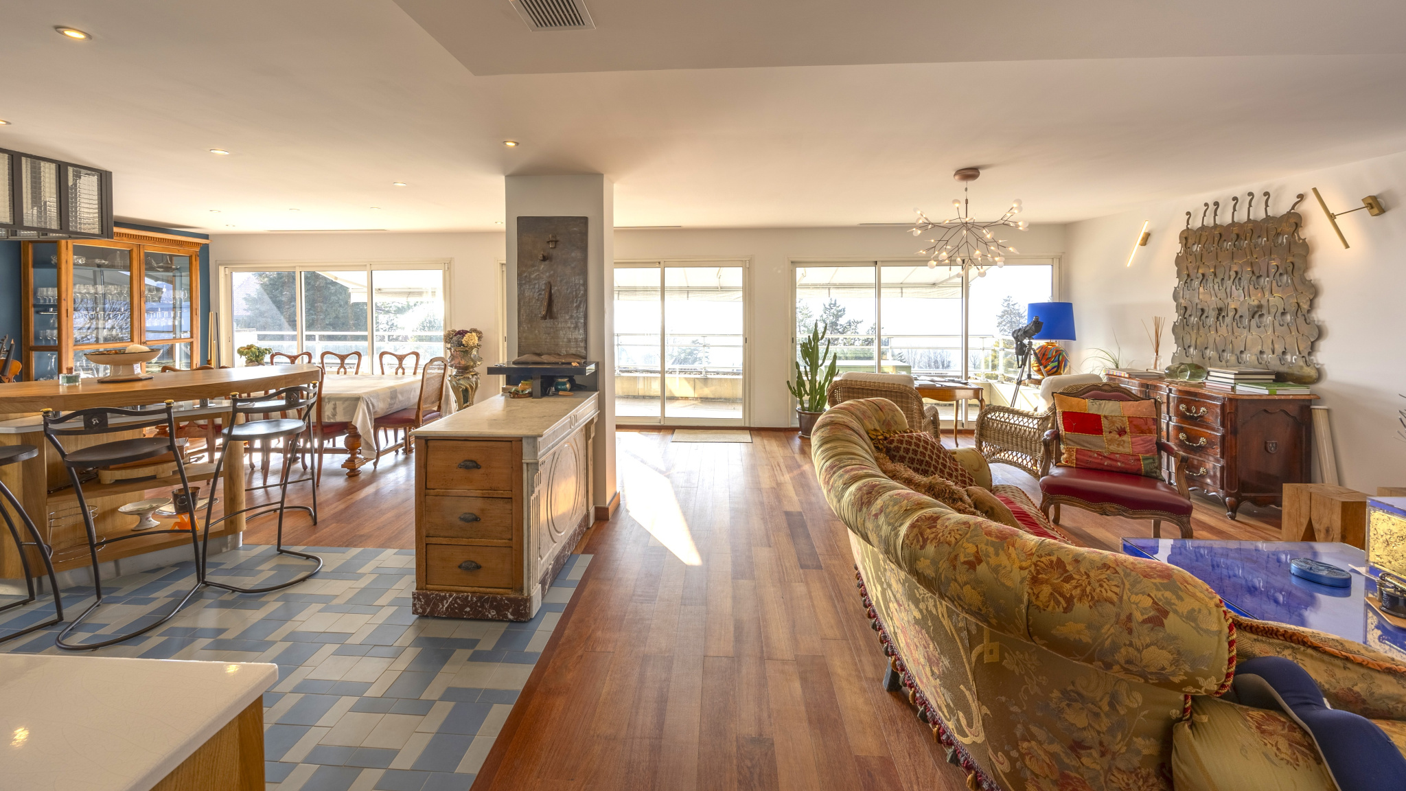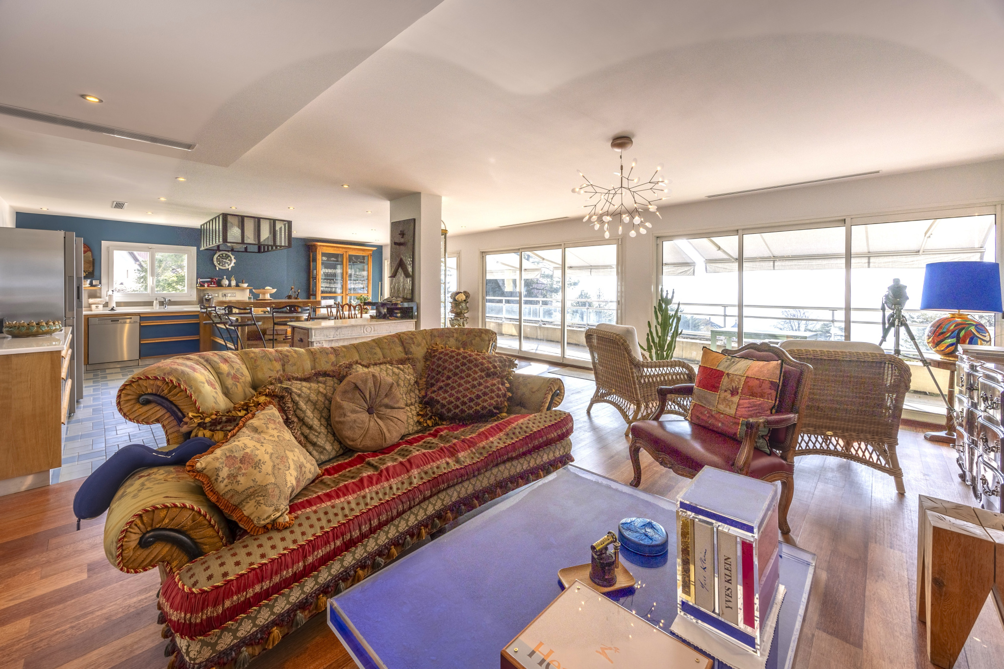 L'appartement, d'une superficie de 230 m2 habitables (287 m2 au total), a été conçu pour offrir un cadre de vie modulable et s'adapter aux attentes les plus exigeantes. Actuellement composé de trois appartements distincts, un appartement principal et deux studios indépendants, il peut être facilement réuni en une seule et somptueuse demeure grâce à de simples cloisons. Chaque chambre a été pensée comme un cocon de sérénité, bénéficiant de sa propre salle d'eau, de toilettes et d'un dressing sur mesure, garantissant ainsi une intimité absolue.