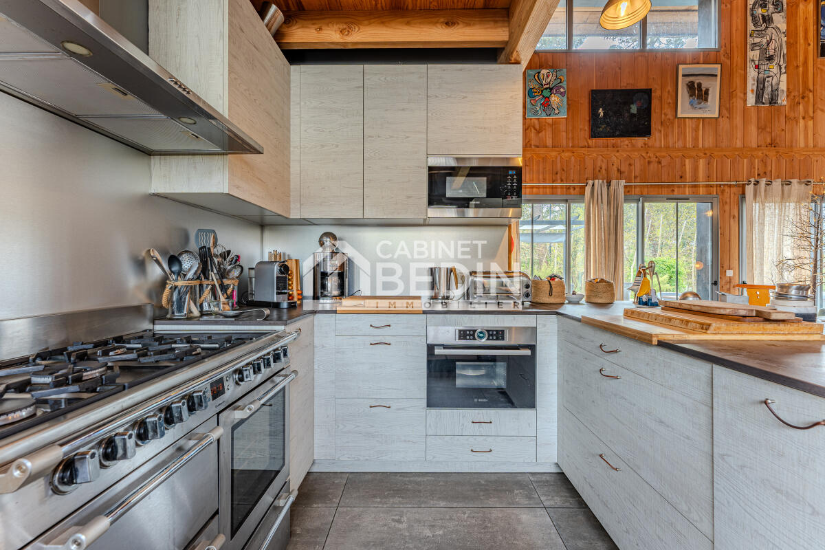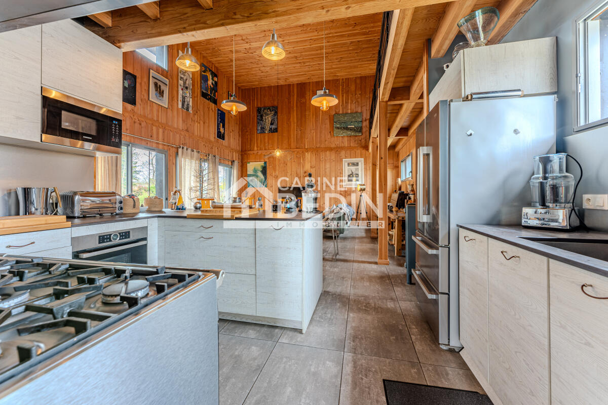 LUXUEUSE VILLA LEGE CENTRE. TRES BELLE VILLA EN BOIS CONSTRUITE EN 2020, D'UNE SURFACE HABITABLE DE 233M² AVEC DES MATERIAUX DE HAUTS NIVEAUX (DPE A) AINSI QU'UNE DECORATION CHIC ET RAFFINEE, SE COMPOSE D'UNE GRANDE PIECE DE VIE AVEC MEZZANINE ACCES TERRASSE DONNANT SUR PISCINE 10x4 JARDIN 1082M² ARROSAGE AUTOMATIQUE 6 SUITES PARENTALES DE 20 à 27M² CHACUNE. STATIONNEMENT AISE POUR VEHICULES, BATEAU. BIEN EXCEPTIONNEL A VISITER SANS TARDER