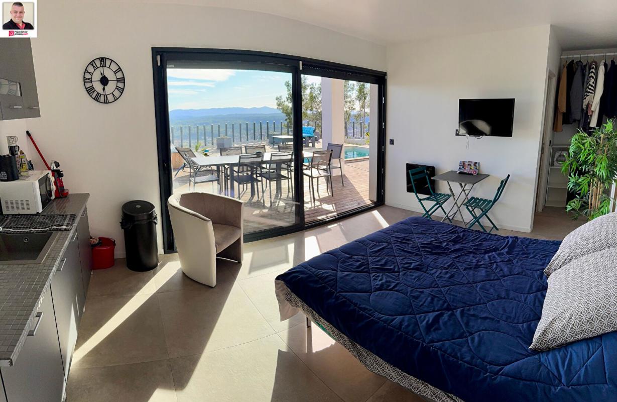 Il y a également un studio de 25m² avec cuisine totalement équipée donnant sur la terrasse offrant pour l'été un espace ombragé pour les repas en famille, ce studio dispose d'un accès direct a la villa ou peut être complètement indépendant avec sa propre salle de bain (baignoire, meuble vasque et WC)