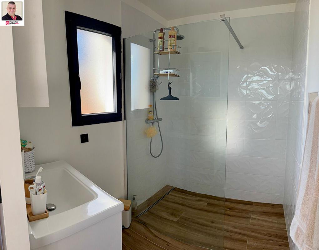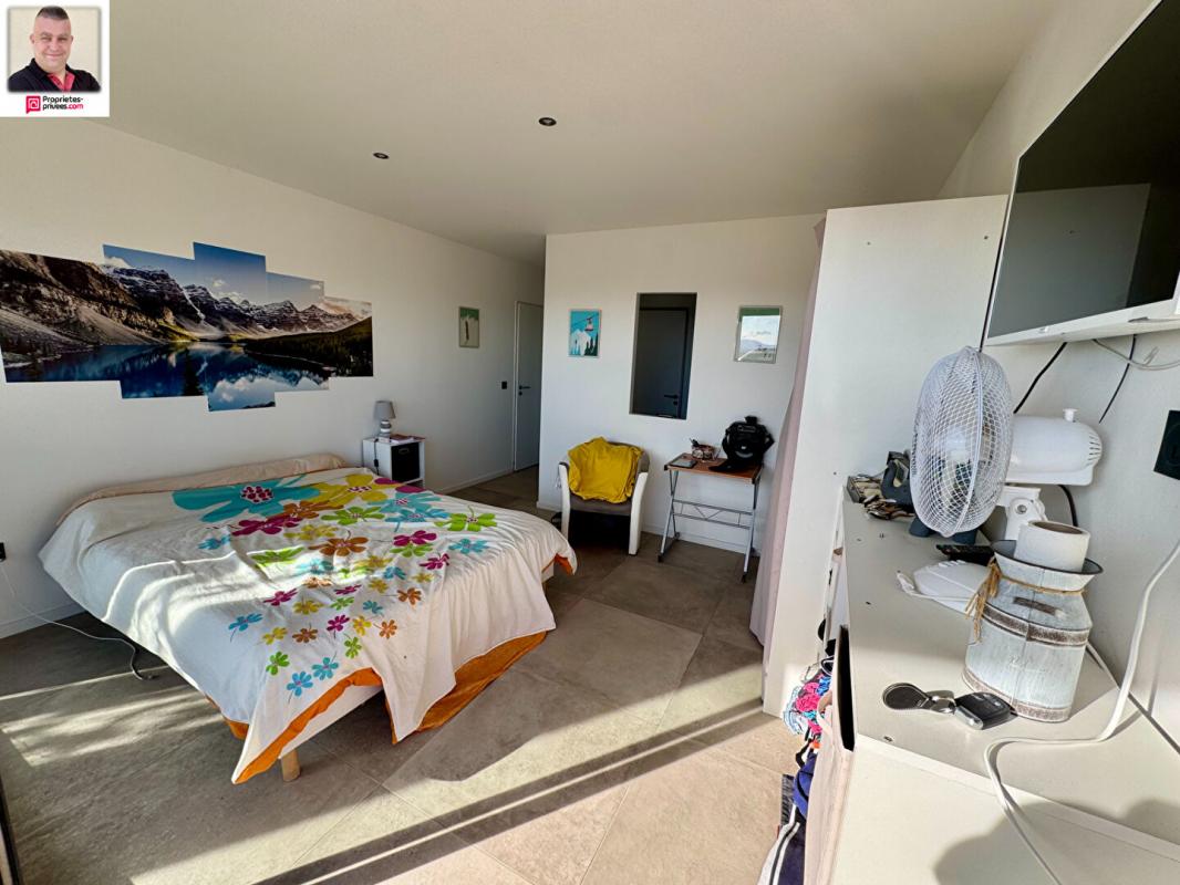 Cette villa se compose d'une pièce de vie de 48 m² donnant sur une belle terrasse exposée sud de 30 m²,une terrasse au nord de 30 m² avec cuisine d'été (plancha ,barbecue, évier et un feu gaz) , une pergola bioclimatique de 9 m²,d'un espace brasero et un emplacement pour accueillir un jacuzzi.