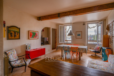 Appartement T3 au 1er étage, traversant, lumineux, vue Port Vieux, entrée sur couloir, petit placard, belle hauteur sous plafond avec poutre dans le séjour cuisine aménagée, 2 chambres, placard, une salle d'eau, wc.