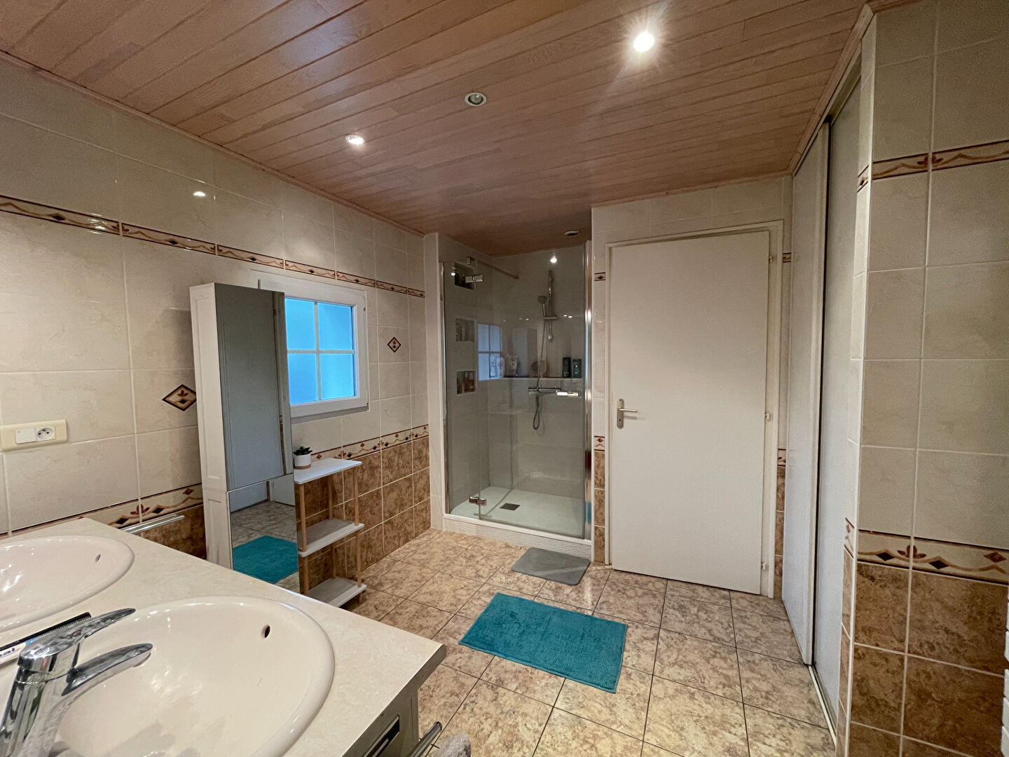 La maison d'habitation comprend : une entrée/dégagement, wc, desservant sur la droite, une pièce de vie de 43 m² avec cuisine ouverte aménagée et équipée et d'une cheminée, donnant sur une véranda exposée S/O, une arrière-cuisine, dégagement/placards, une suite parentale (salle d'eau + wc séparé) exposée S/E.