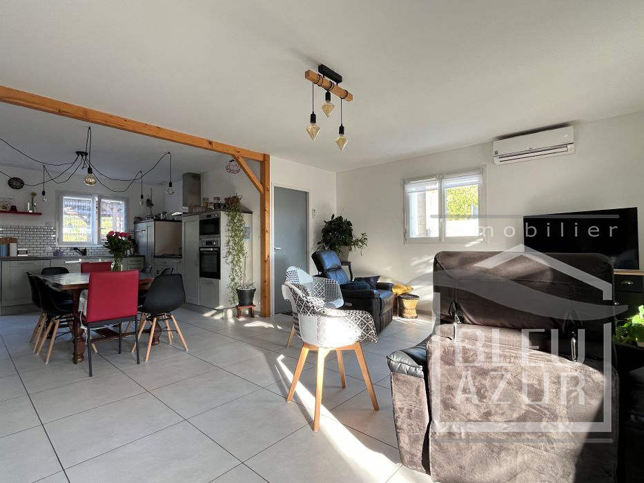 Aux portes de Luçon, maison de plain pied construite en 2017 de 91 m2 habitables comprenant une pièce de vie très lumineuse de 41 m2 avec cuisine ouverte aménagée et équipée, un cellier, un dégagement desservant deux chambres avec placards, un bureau avec rangement, une salle d'eau avec douche à l'italienne et wc indépendant avec lave-main.