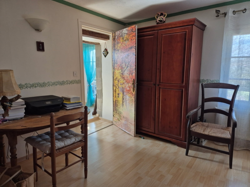 De nombreux espaces annexes viennent enrichir le bien : buanderie, grande pièce de rangement, atelier, serre, garage, carport, sans oublier un potager, des arbres fruitiers et une source naturelle productive.