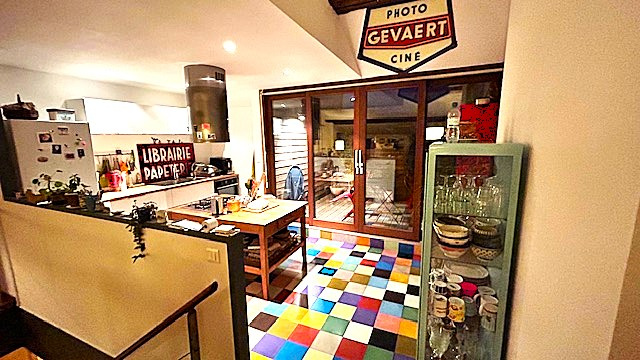 Parquets anciens, tomettes, boiseries, poutraisons apparentes et cheminée d'ornememnt et belles hauteur sous plafonds composent un ensemble harmonieux, la pièce de vie volumineuse et avec accès terrasse est très appréciable !