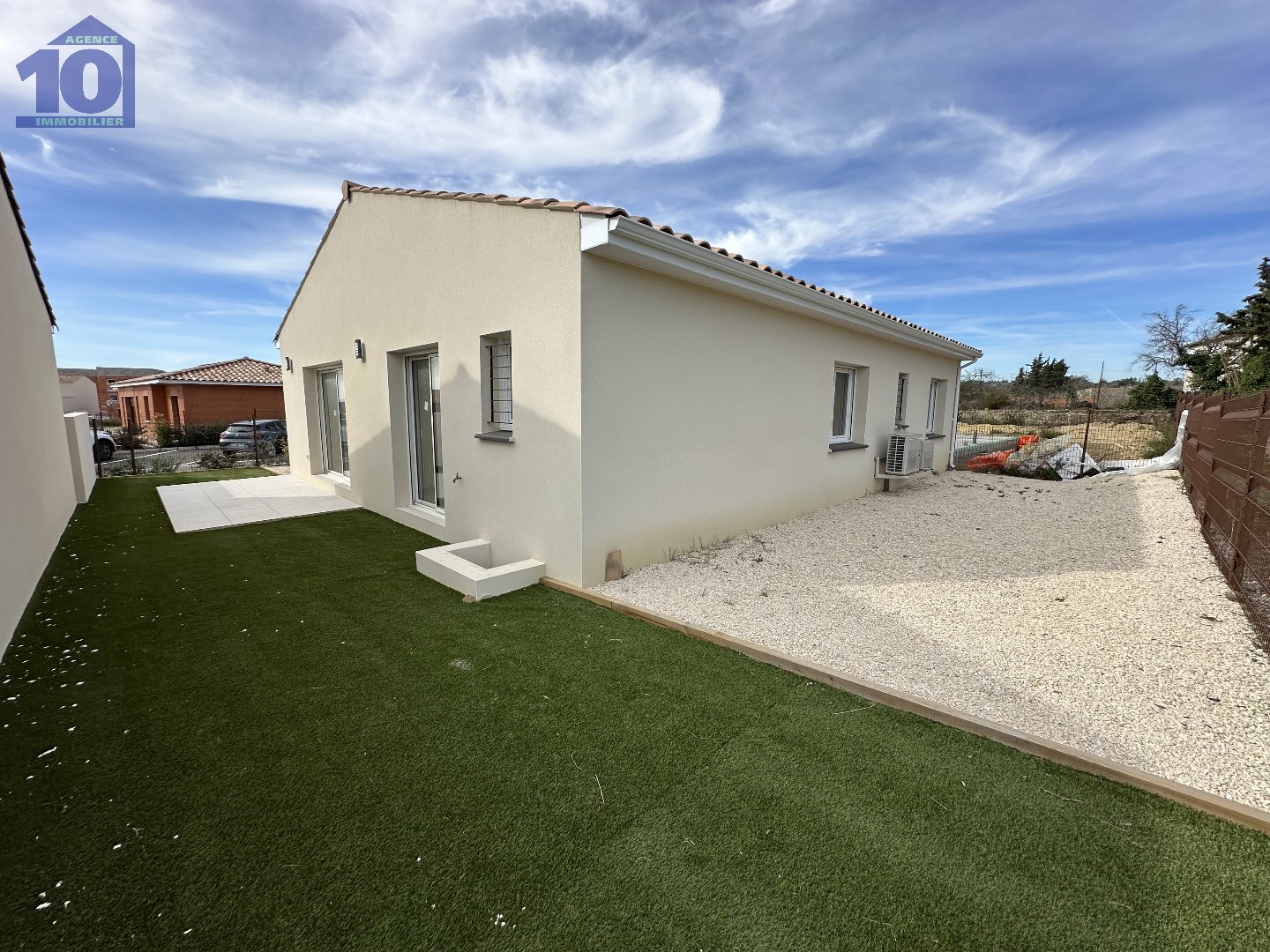 Dans un village, recherché et dynamique, à 20 minutes des Plage et à 10 km de Béziers, une maison neuve de plain-pied de 90 m². L'entrée dessert une belle pièce de vie climatisé de 45 m², le coin nuit offre deux chambres avec placard, une suite parentale, une salle de bains et un WC séparé. Un garage, deux places de stationnement, une terrasse carrelée, des frais de notaire, réduit, une garantie décennale et une dommage ouvrage complètent le bien.