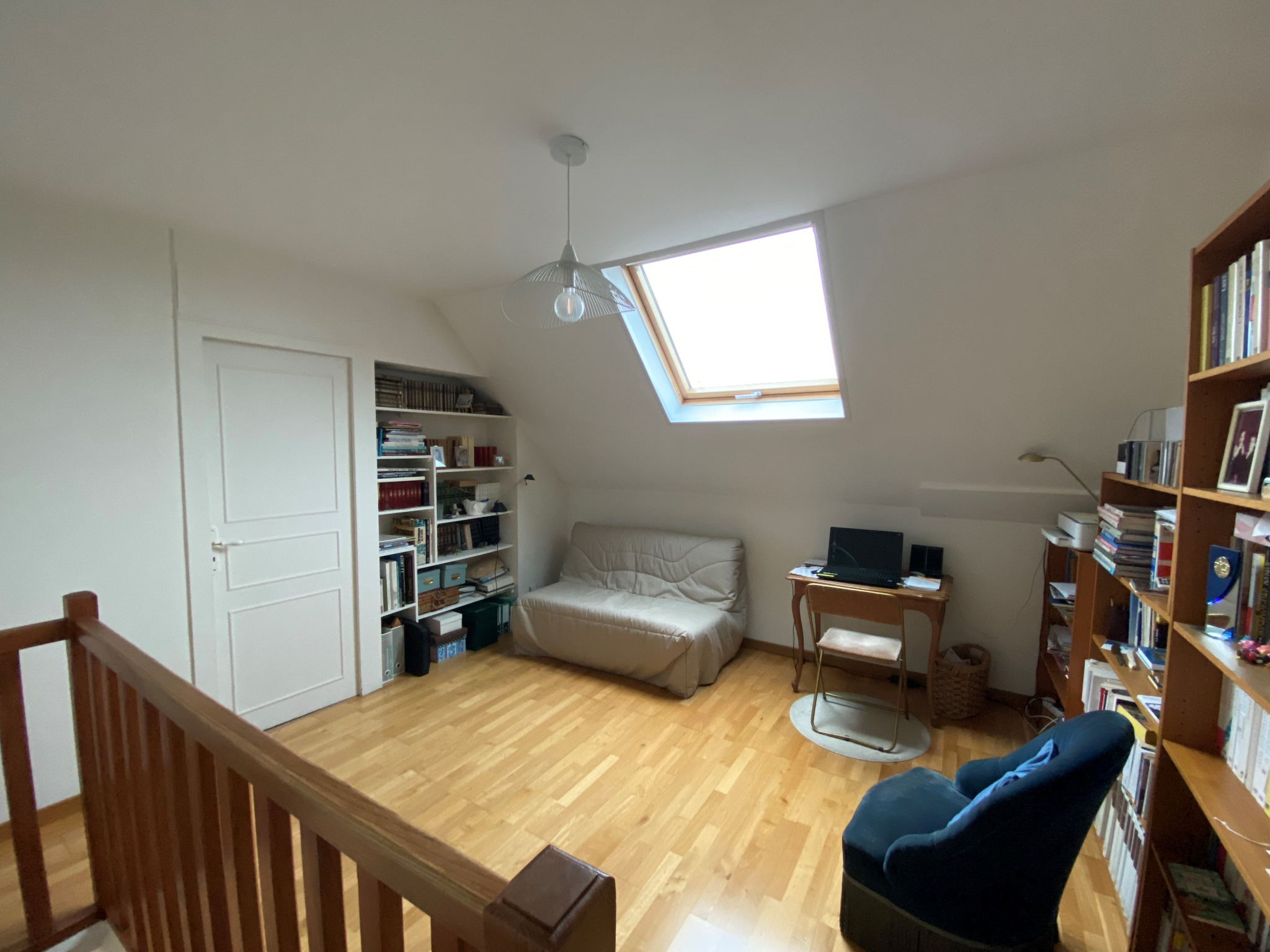 Elle se compose au rez-de-chaussée : d'une entrée ouverte sur un séjour salle à manger traversant et lumineux avec terrasse et jardin, d'une cuisine indépendante et spacieuse aménagée et équipée, d'une grande salle de bains, d'une chambre et d'un WC; à l'étage : d'un palier aménagée en bureau et bibliothèque, de deux chambres volumineuses, d'une salle d'eau avec WC et d'un dressing.
