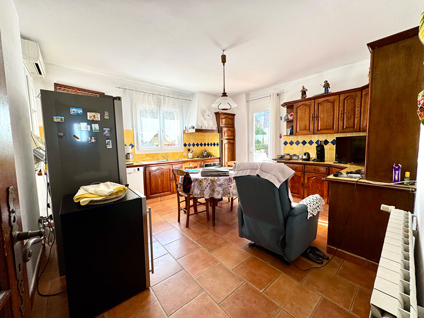 Belles prestations : cheminée foyer ouvert, climatisation réversible, chauffage fuel, double vitrage PVC, volets PVC.