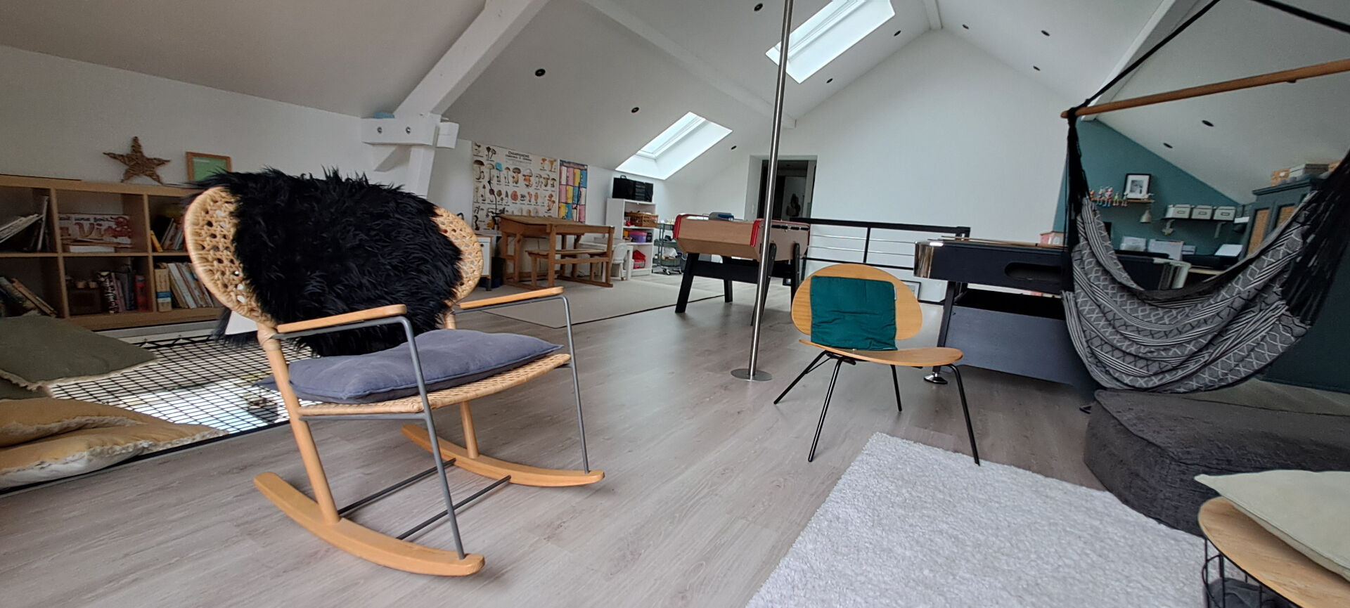Au-dessus de ce bel espace à vivre, vous bénéficiez d'un espace loisirs et bureau de 46m² avec des possibilités d'aménagement et de personnalisation.