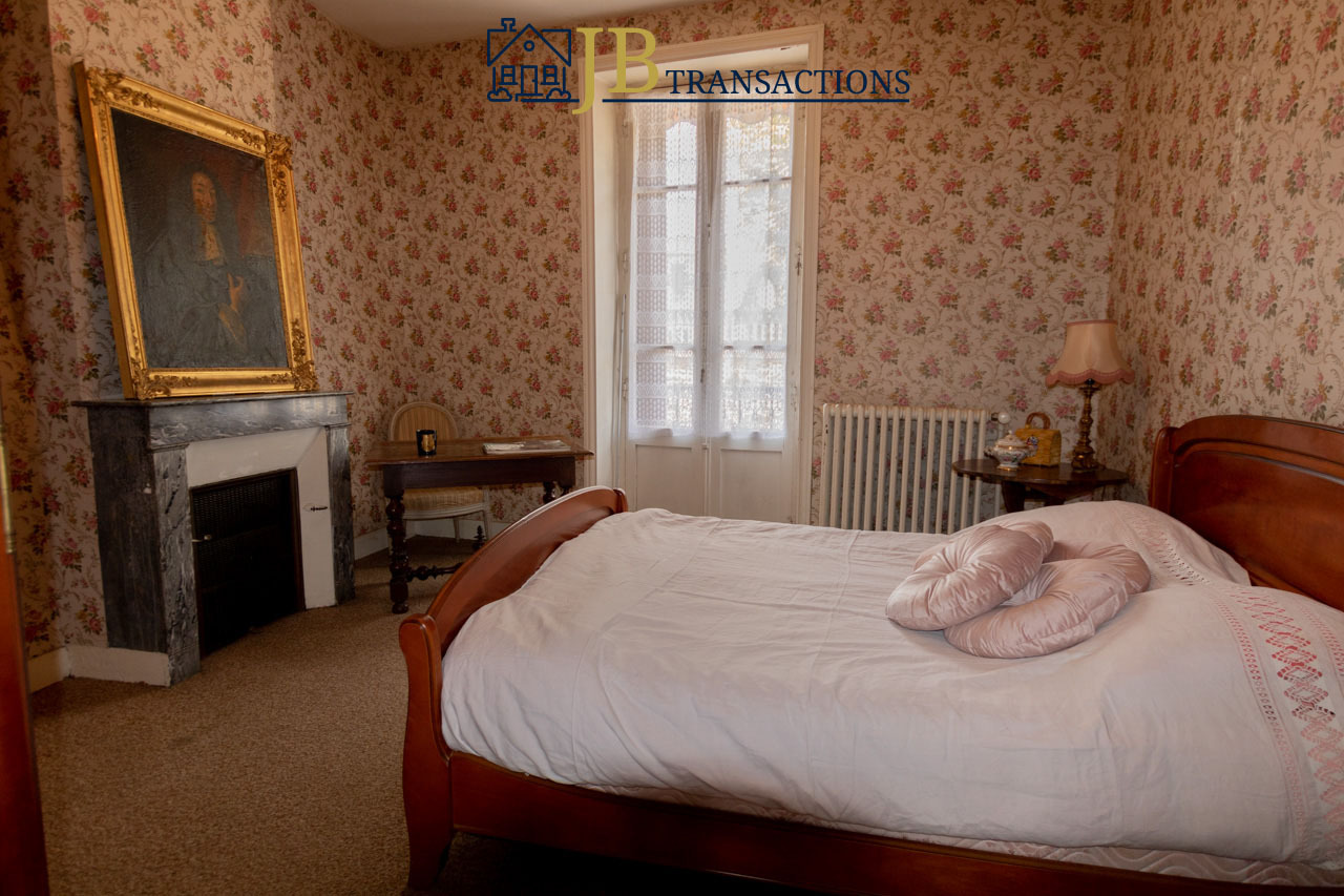 A l’étage, un grand couloir distribue une cuisine, un salon, deux chambres, salle d’eau et wc indépendant.