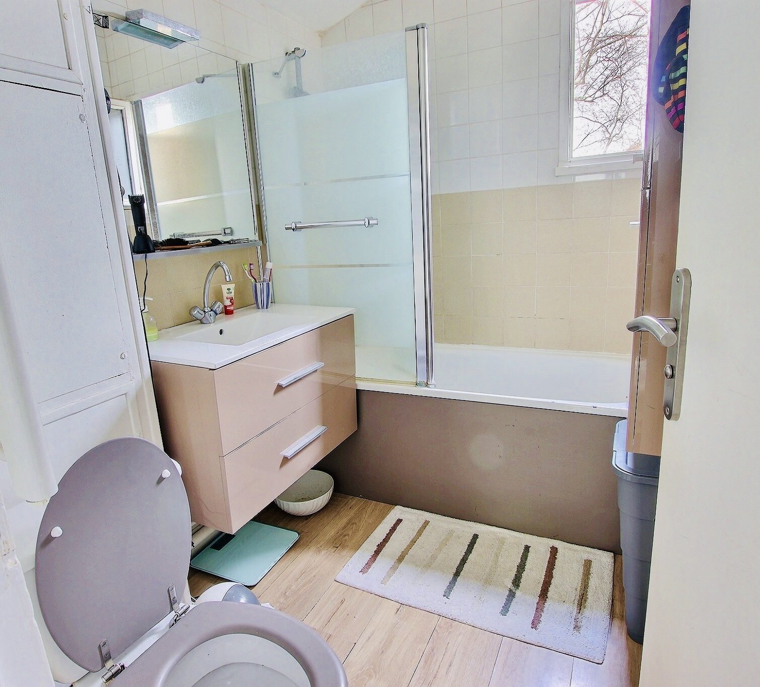 Un emplacement de stationnement privatif pouvant contenir deux voitures complète le bien.