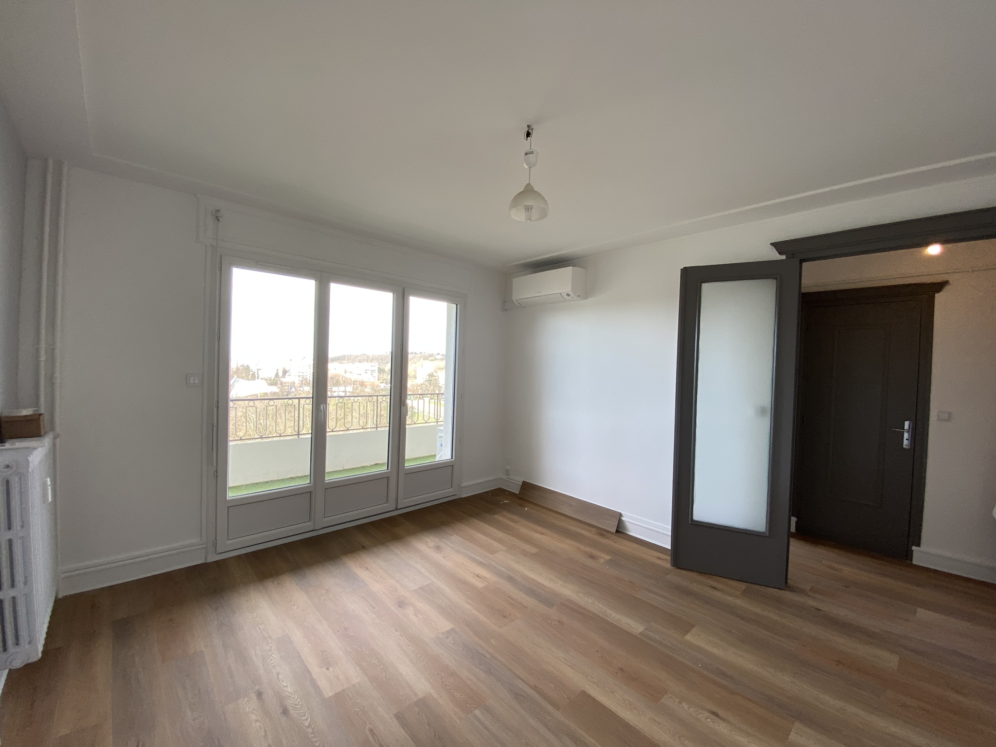 Dans une résidence sécurisée, appartement de type T1 avec superbe vue sur le lac d'Allier et l'hippodrome : - Entrée, pièce principale, balcons, cuisine, salle de douches, wc - Etage élevé avec ascenseur - 1 cave Chauffage : collectif gaz + pompe à chaleur individuelle réversible DPE du 29/11/2024 : - Estimation des coûts énergétiques annuels (chauffage, refroidissement, éclairage et auxiliaires) : entre 670 EUR et 980 EUR (abonnements compris) Charges de copropriété annuelles (comprenant chauffage et eau) : 1380 EUR (exercice 2023) soit 115 EUR par mois - La copropriété : Syndic : pas de procédure en cours Les risques auxquels ce bien pourraient être exposé sont disponibles sur le site georisques