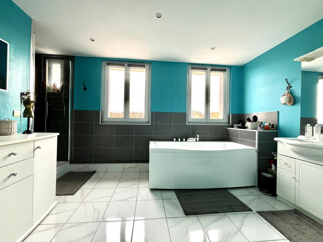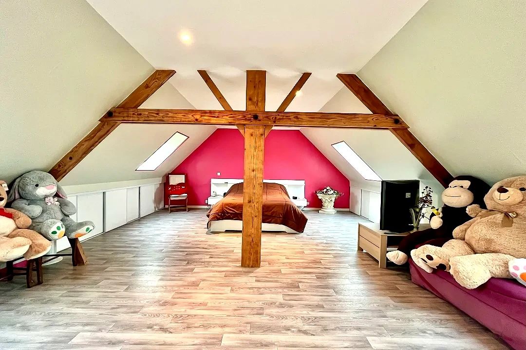 A proximité d'Hérouvillette : grande maison de 172m² comprenant une entrée avec placard, une grande pièce de vie traversante, une cuisine équipée et aménagée, 3 chambres spacieuses dont une avec dressing, une salle d'eau avec WC. Au premier 2 chambres, une salle de bains avec douche. Au 2ème vous trouverez une grande chambre parentale de 22m².