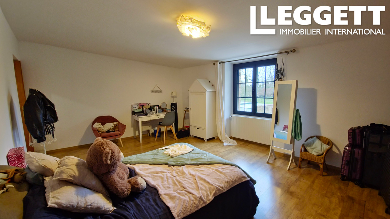 L'habitation comprend une grande pièce de vie lumineuse avec une cheminée ouverte (45 m²), une cuisine aménagée et équipée avec un insert à bois (26 m²), accès sur la terrasse avec piscine 8x4m avec dôme et une buanderie. La suite parentale de 53 m² est composée d'une chambre, une salle de bain avec baignoire, douche et WC.