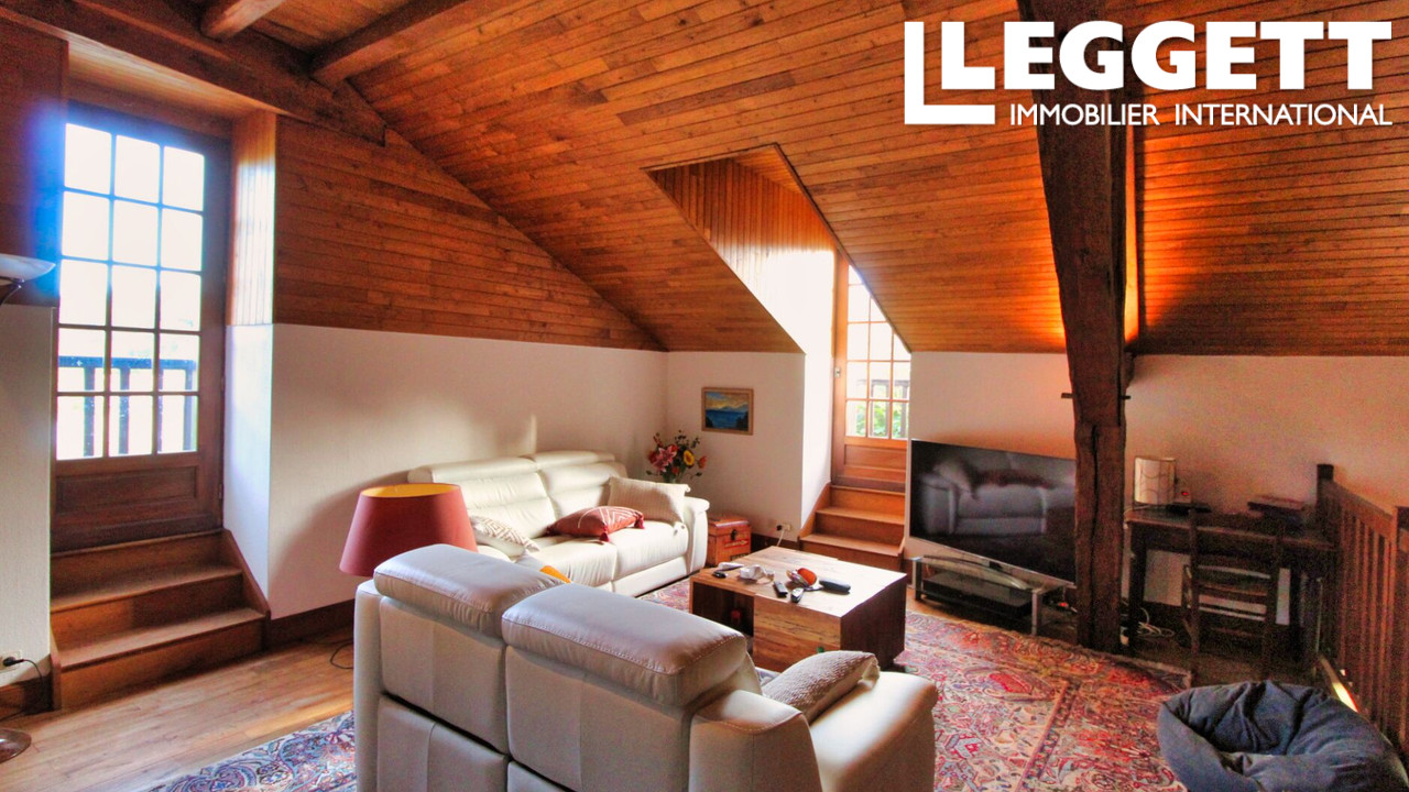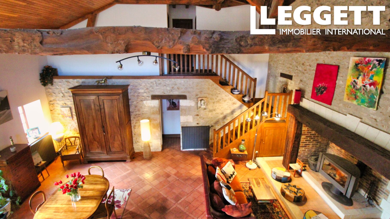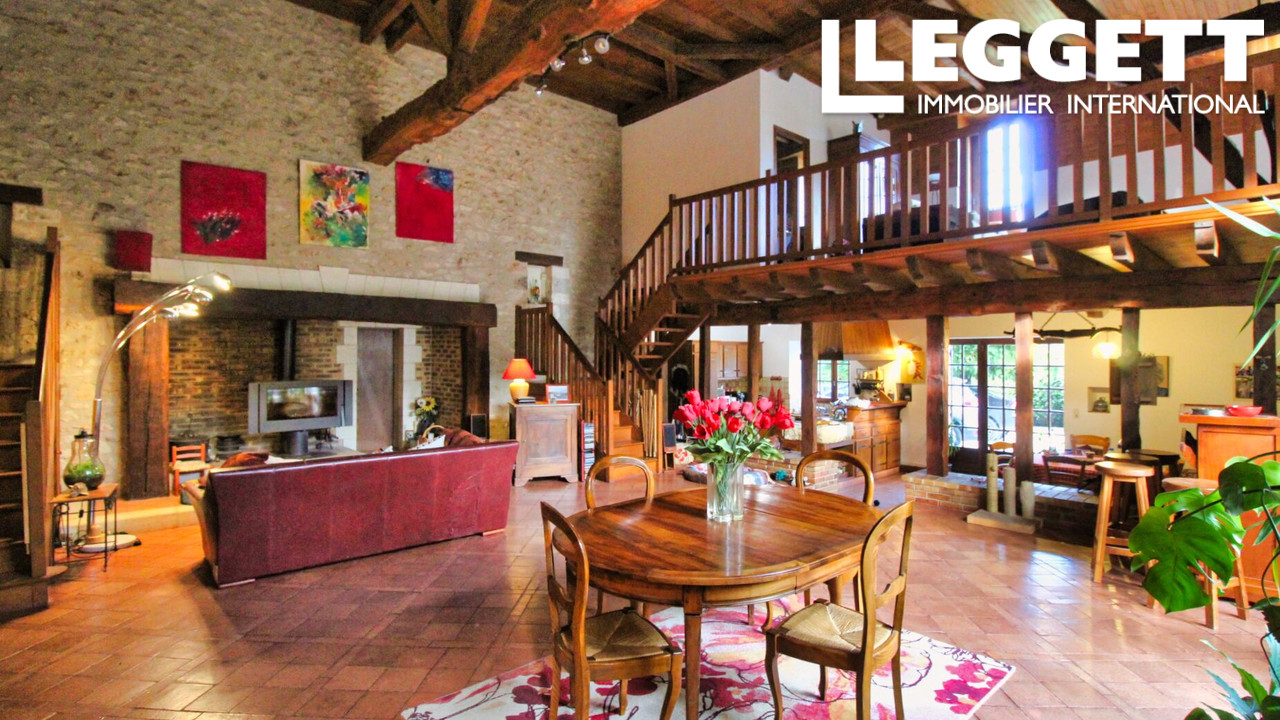 La propriété est composée d'une grande maison d'habitation avec 4/5 chambres, 3 salles d'eau/bain, 1 grand séjour cathédrale 58m2 avec poêle à bois, 1 cuisine ouverte entièrement équipée, 1 mezzanine faisant office de salon actuellement.
