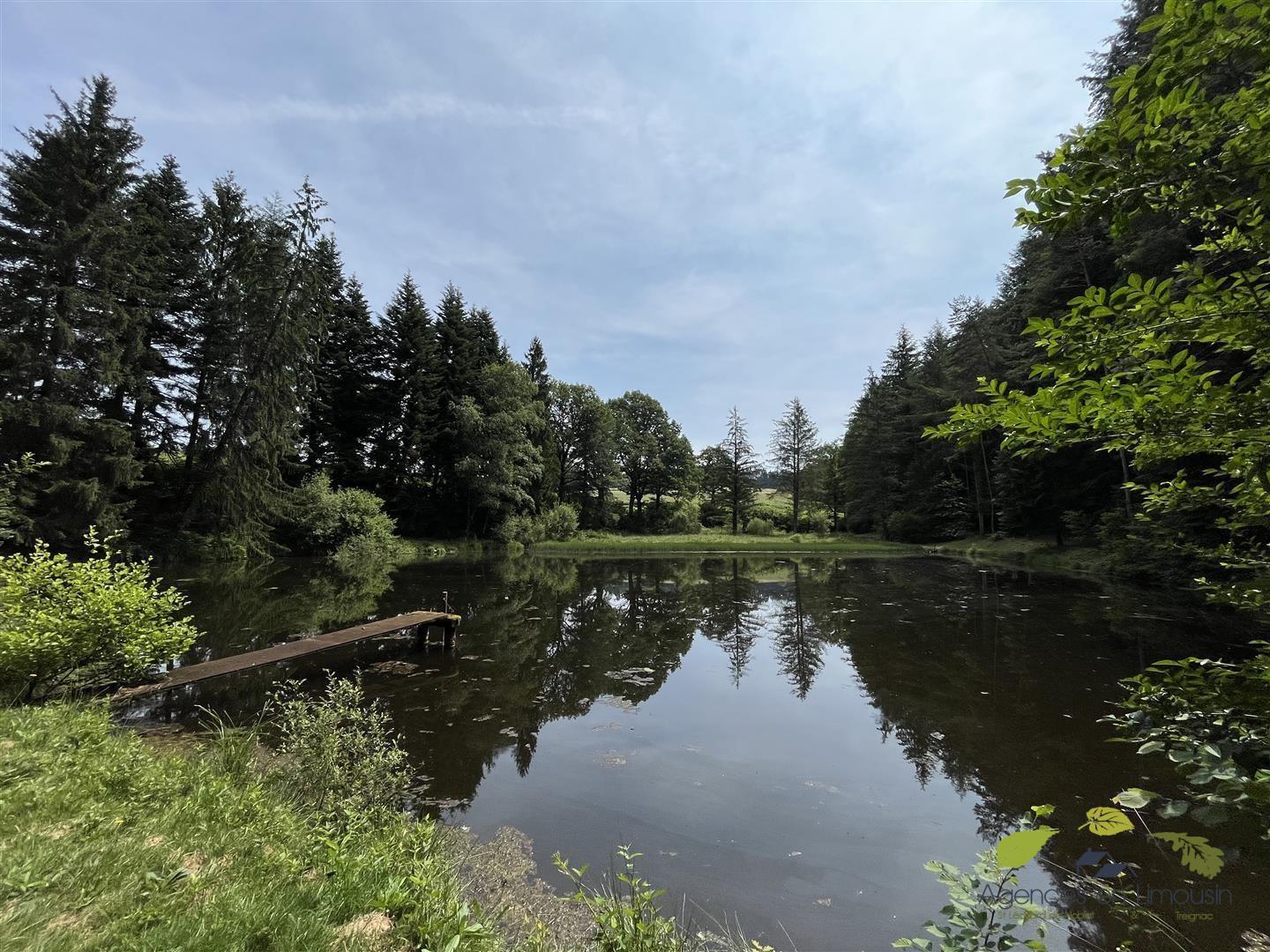 Limousin, situé au calme sans vis à vis, à moins de 10 minutes du centre ville de Saint Léonard de Noblat et 35 minutes de Limoges, nous avons le plaisir de vous présenter une parcelle de 22 455 m² en pleine nature avec étang poissonneux d'une surface de 3500 m², nombreux arbres de type chênes et sapins.