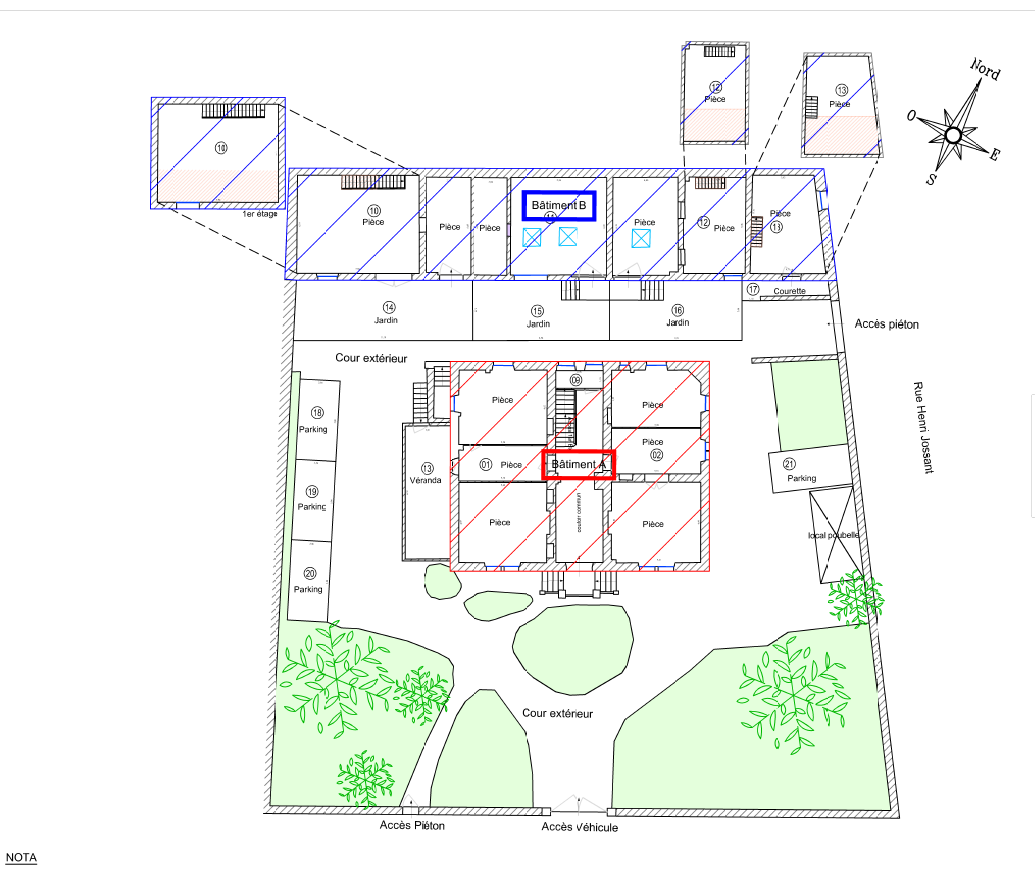Au sein d'une copropriété en cours de création composée de 13 lots : un bâtiment principal, une maison de maître divisée en huit appartements, ainsi qu'une longère comprenant quatre appartements avec jardinets privatifs.