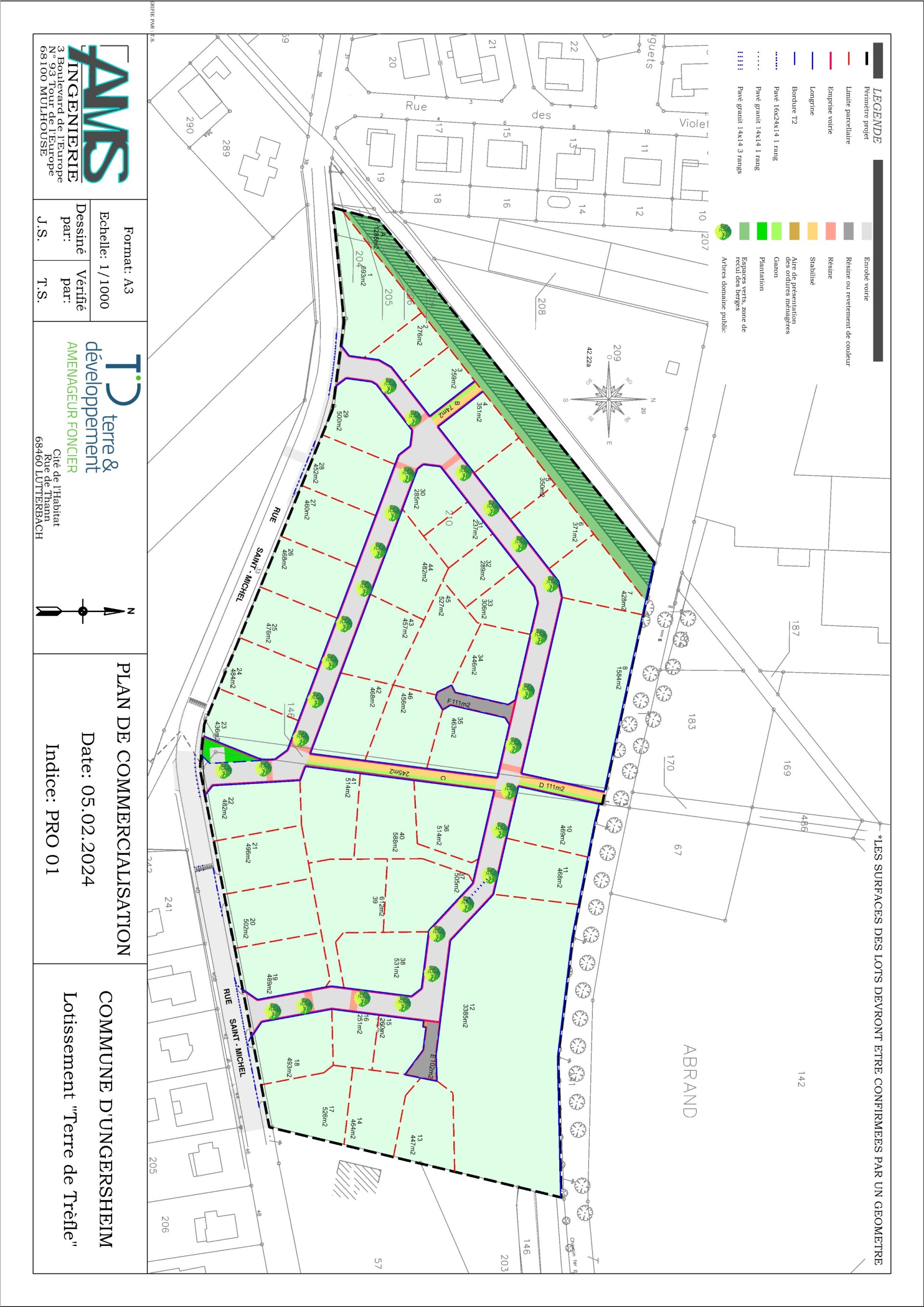 Dans un cadre privilégié au c?ur du nouveau lotissement Terre de Trèfle à Ungersheim, découvrez ce terrain à bâtir viabilisé formant le lot 7, libre de constructeur, offrant une superficie de 4,28 ares (140 m² de surface de plancher).