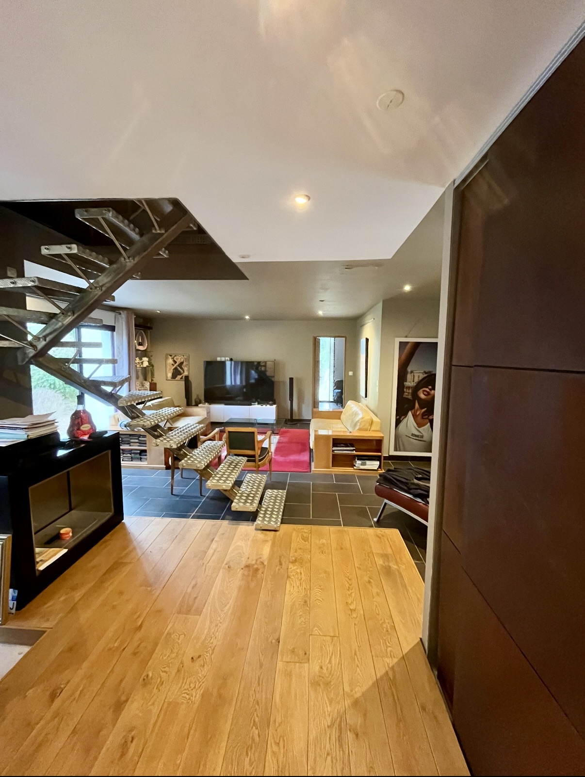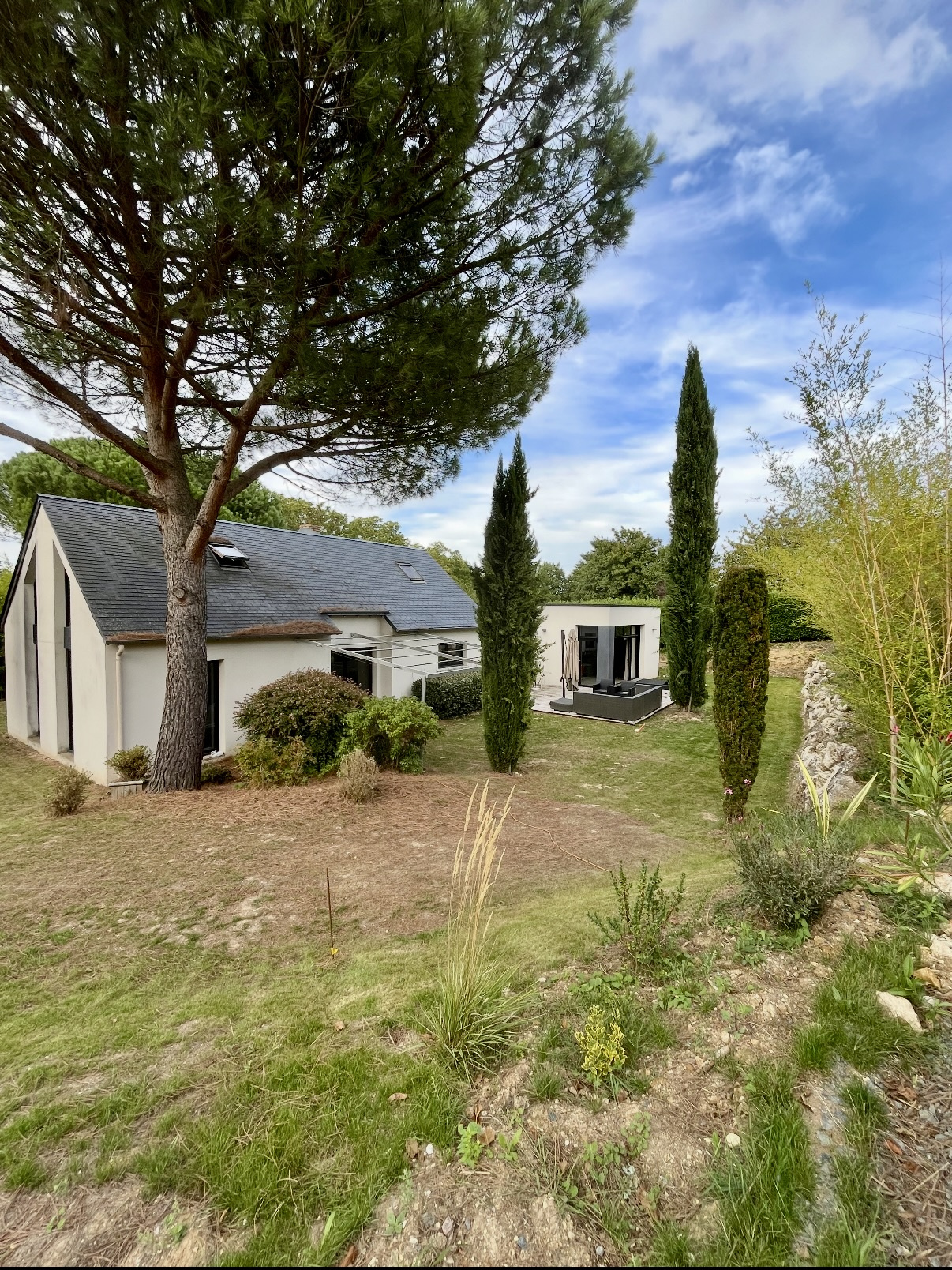 À seulement 10 minutes du centre-ville de Tours, aux portes de Saint-Cyr-sur-Loire, et à proximité à pied des transports scolaires, commerces alimentaires et du centre-ville, cette maison d'architecte aux prestations de qualité en parfait état général se situe dans un environnement privilégié et verdoyant. Entrée desservant une belle pièce de vie lumineuse avec accès terrasse, cuisine entièrement aménagée et équipée haut de gamme, arrière cuisine, 4 chambres dont 3 avec salles d'eau privatives.