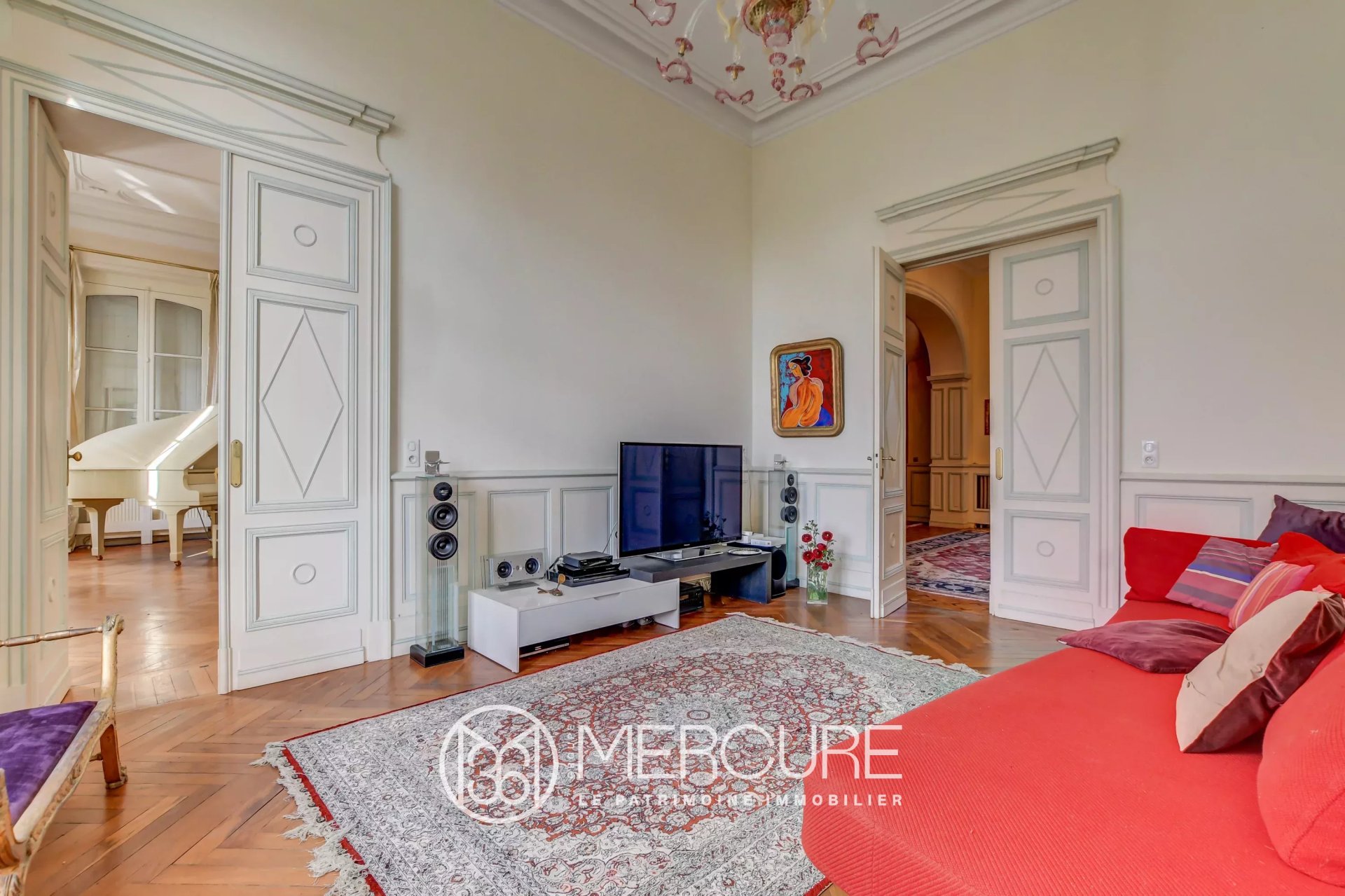 Alliant charme d’époque et modernité, la demeure propose seize pièces dont de vastes salons, chambres, bureaux, salle de sport, dressing et plusieurs salles de bains et salles d’eau. Un sous-sol de plus de 250 m² complète l’ensemble avec un système de chauffage au gaz performant.