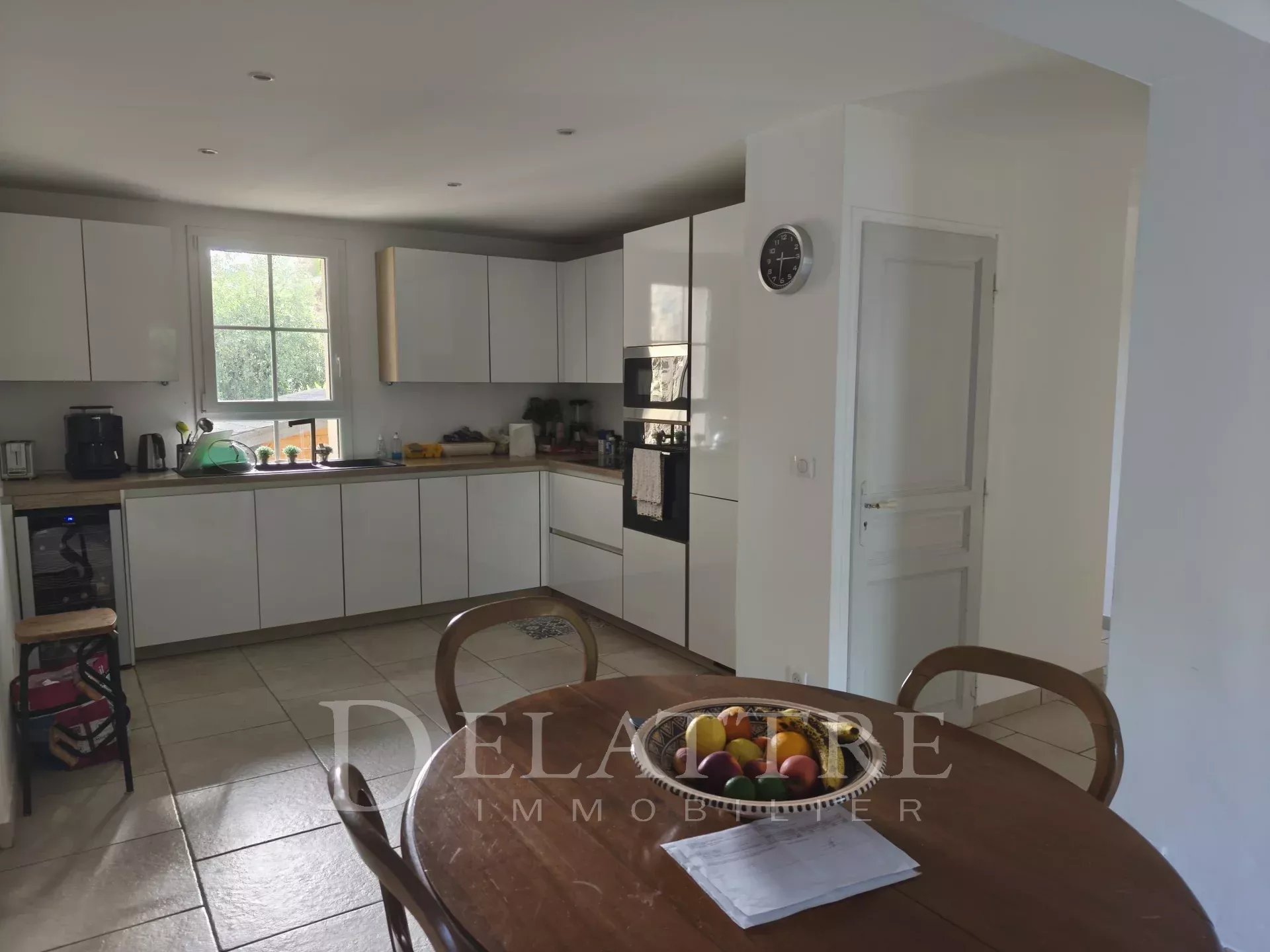 Dès l’entrée, la douceur de vivre s’installe : une cuisine ouverte sur la salle à manger invite à partager de délicieux moments, tandis qu’un salon chaleureux avec cheminée à bois prolonge les soirées encore fraîches du printemps dans une atmosphère cosy.