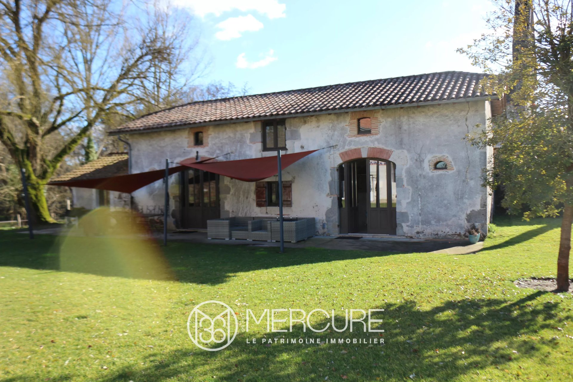 Opportunité! Proche Casteljaloux, ville thermale, dans village, très belle ancienne maison landaise avec maison d’amis et dépendance sur jardin arboré de 2 925 m². Proche toutes commodités, à 1h35 des plages des Landes et 1h15 de Bordeaux.