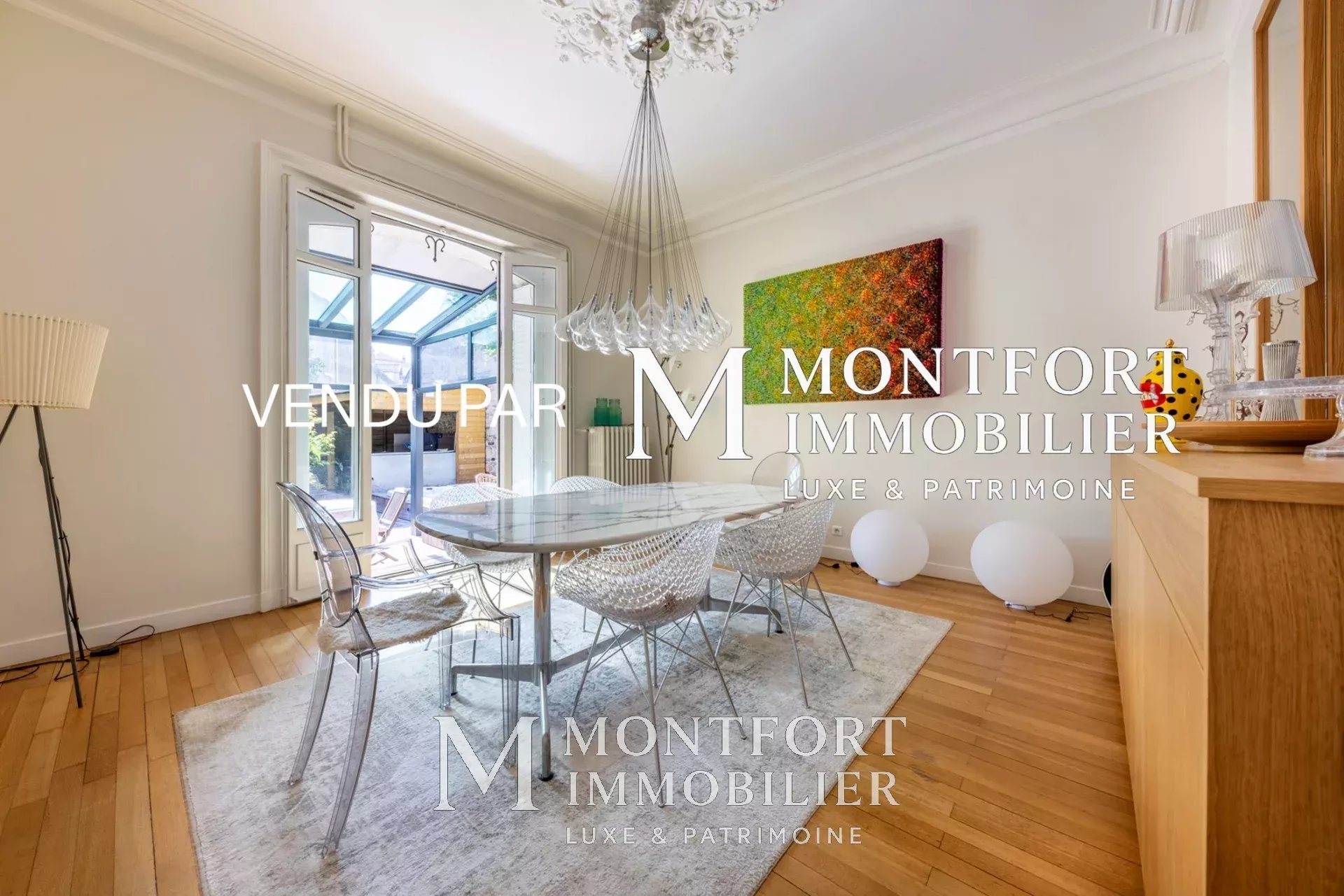 Entièrement rénovée et réaménagée, elle est extrêmement lumineuse et dispose de 195 m² sur trois niveaux et 53 m² en sous-sol. Au rez-de-chaussée, entrée avec un magnifique escalier desservant les deux étages, WC, salon avec cheminée, cuisine aménagée et équipée en partie ouverte sur la salle à manger, cette dernière bénéficiant d’un accès direct sur la terrasse et le jardin.