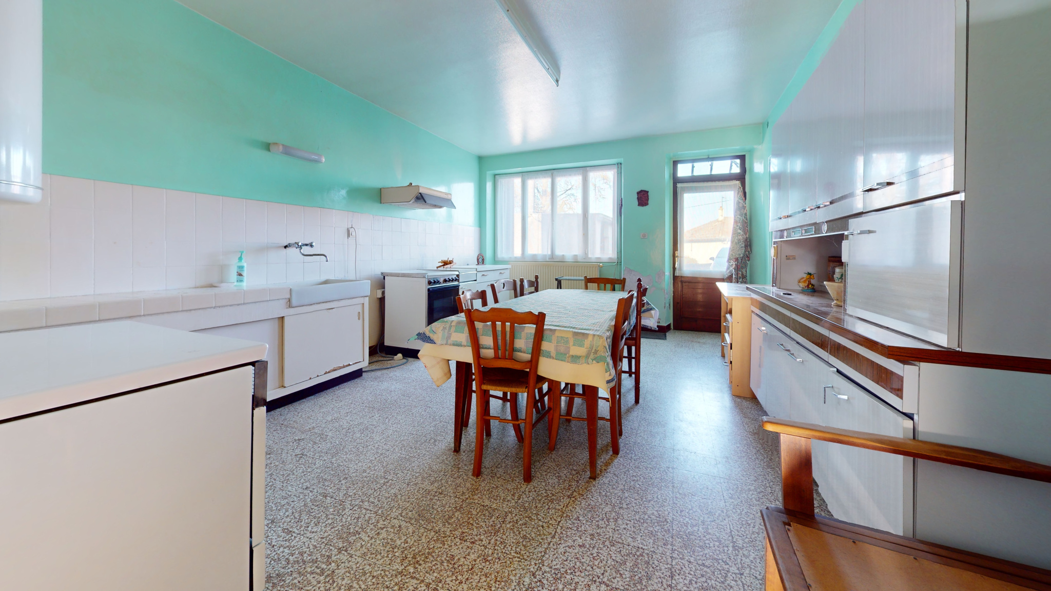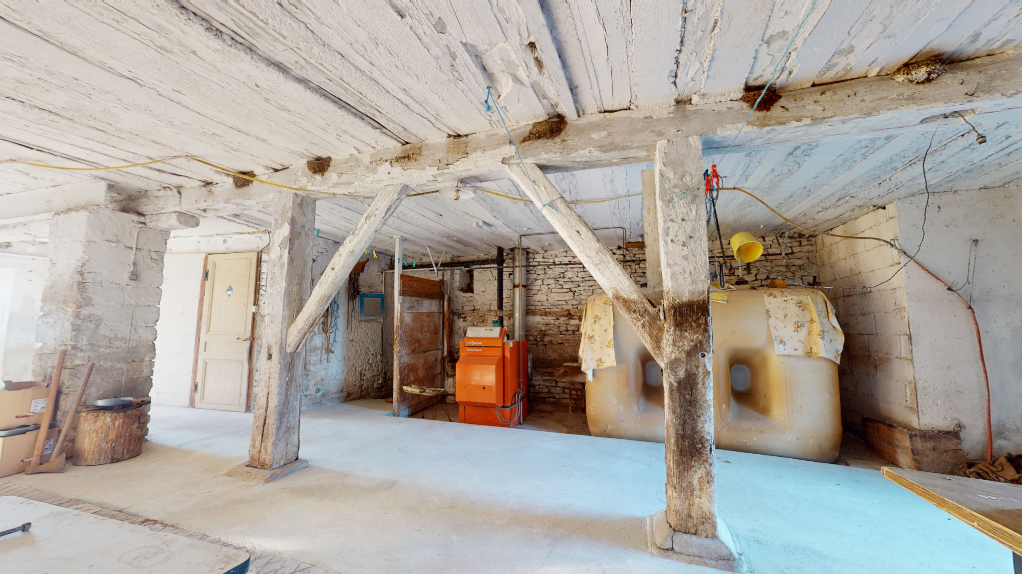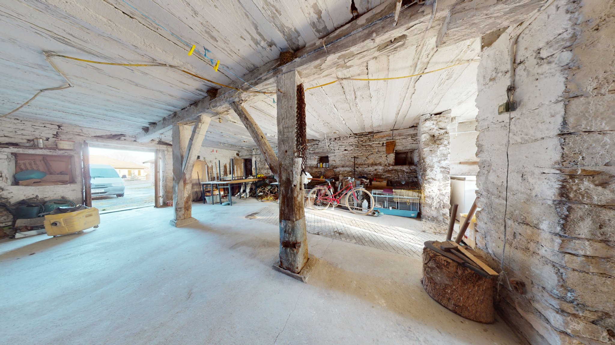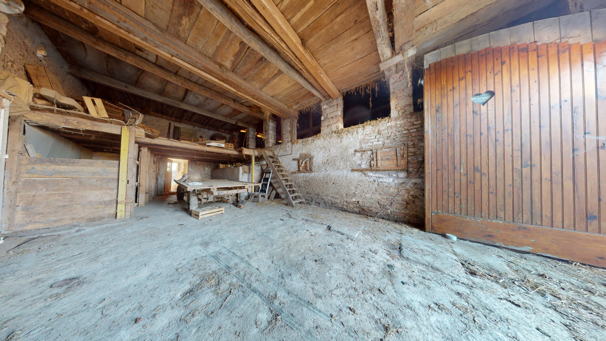 Cette bâtisse dispose d'un logement de 94 m2 comprenant une cuisine, salon-séjour, 2 chambres, toilettes,salle d'eau, granges (150 m2).