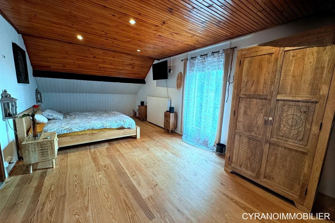 A l'étage: grand palier ( espace salle de jeux, 4 chambres, une salle d'eau, un wc indépendant. 7 chambres, dressing, salle de jeux, cuisine équipée indépendante, séjour avec poele à granules avec accès direct à la jolie terrasse et jardin.