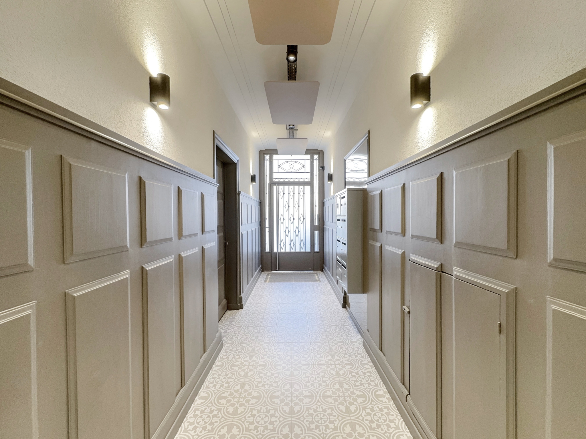 L'appartement, situé au premier étage, est à l'image de l'édifice. Alliant confort moderne, style et qualité, c'est un véritable cocon de charme citadin.