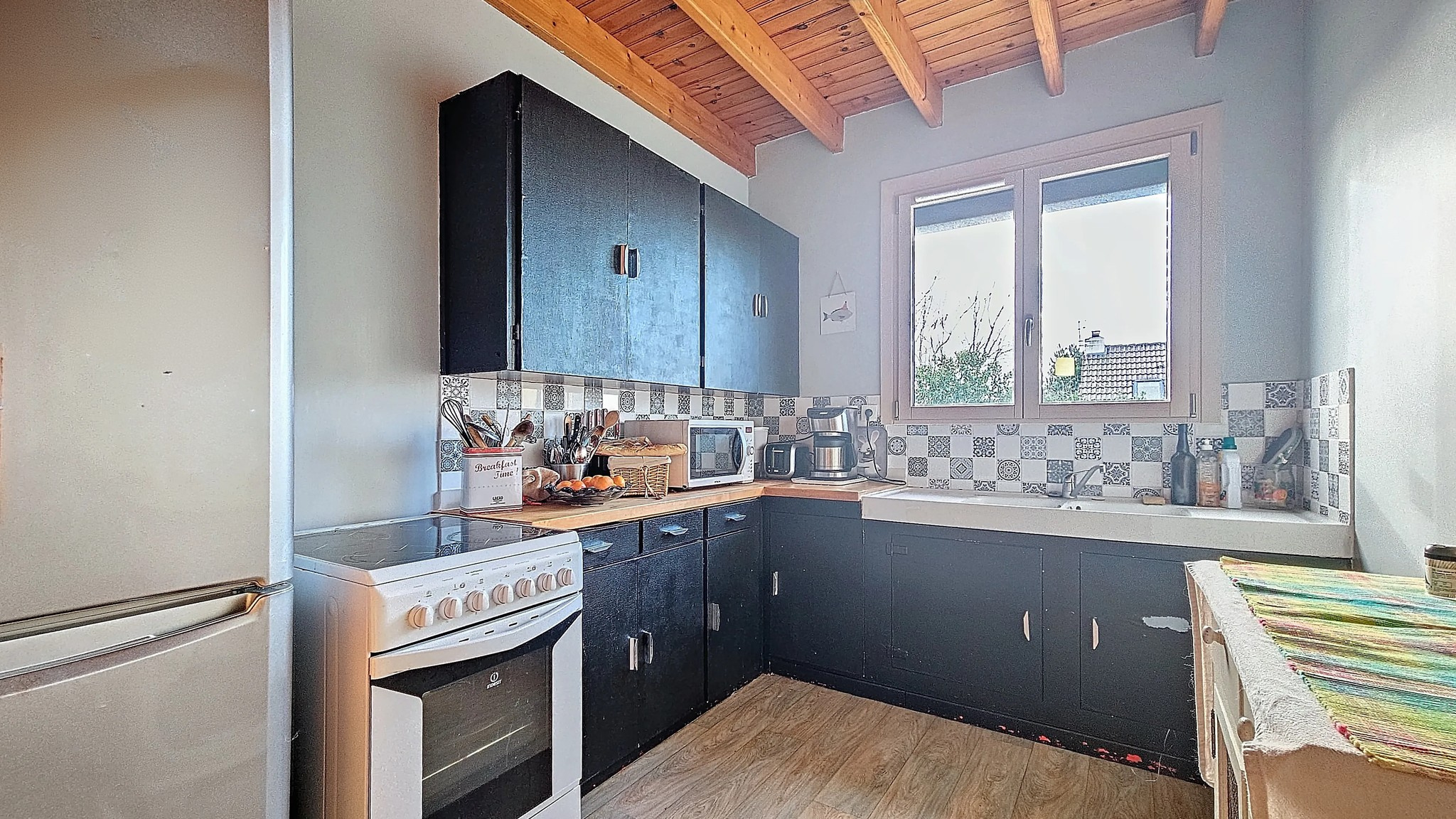 Le 1er étage est composé d'un séjour salon avec cheminée insert, d'une cuisine indépendante, d'une salle d'eau, d'un WC et d'une chambre.