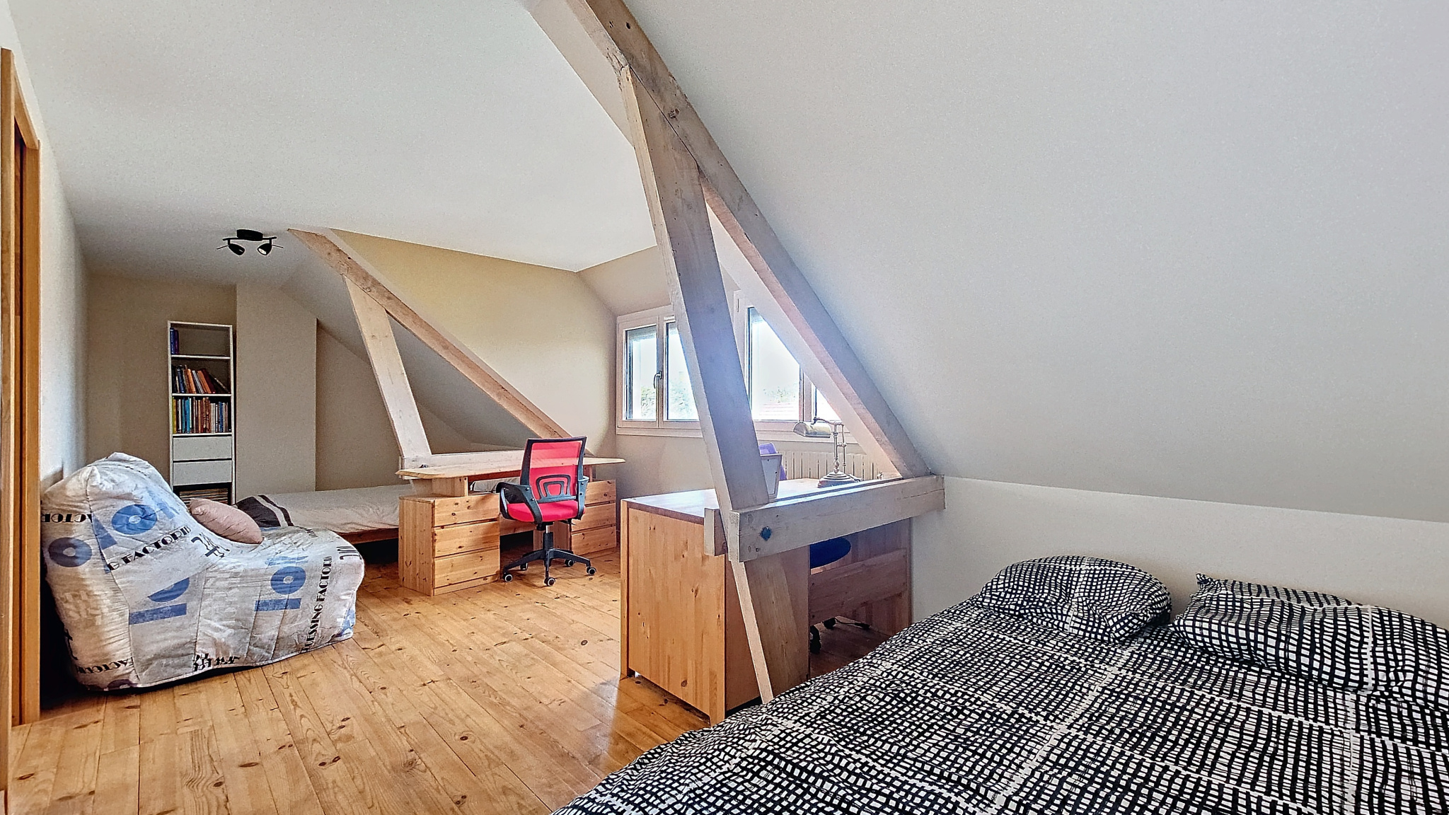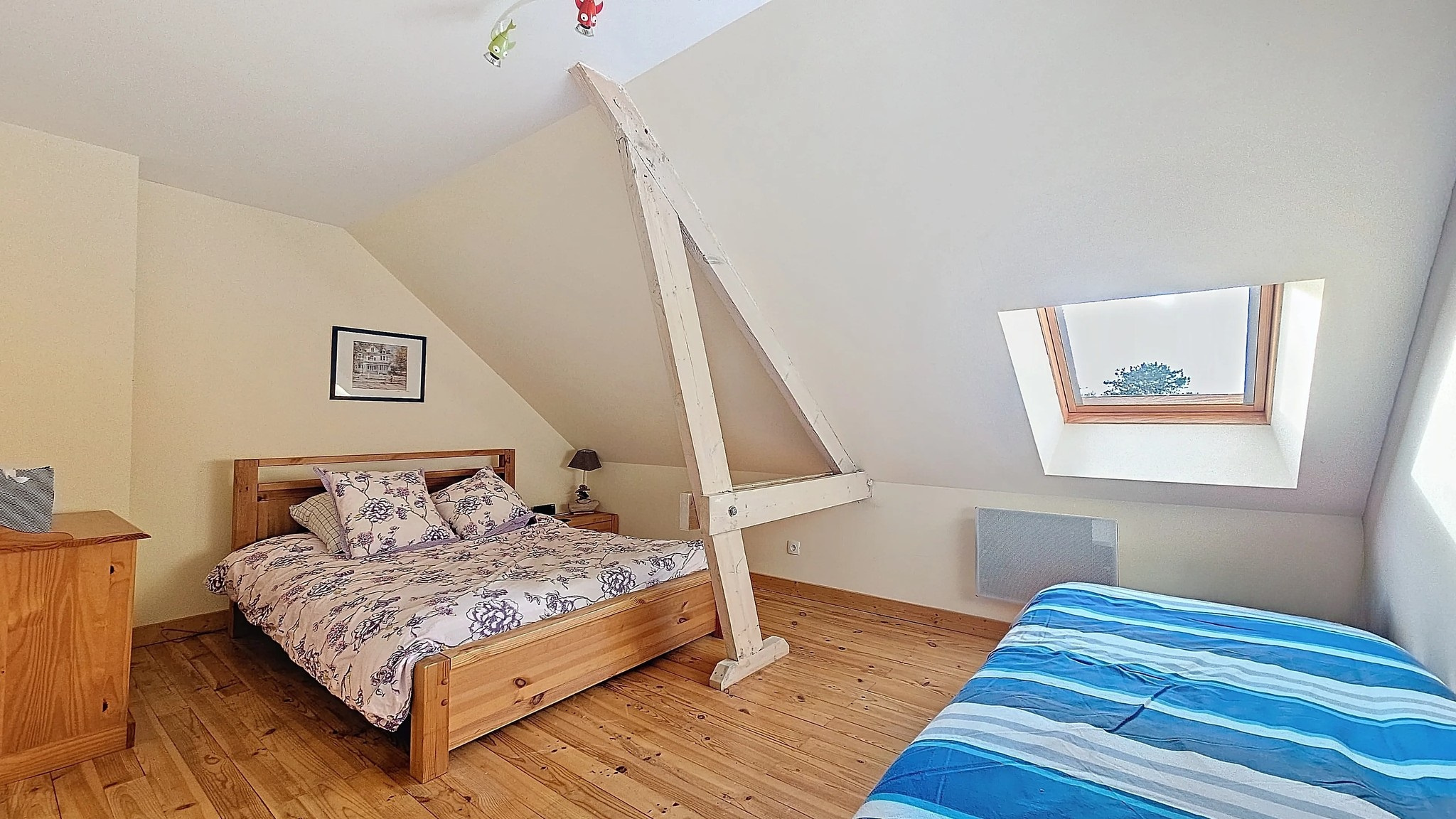 Au 2ème étage, un couloir dessert deux chambres et un dortoir qui séduira les enfants.