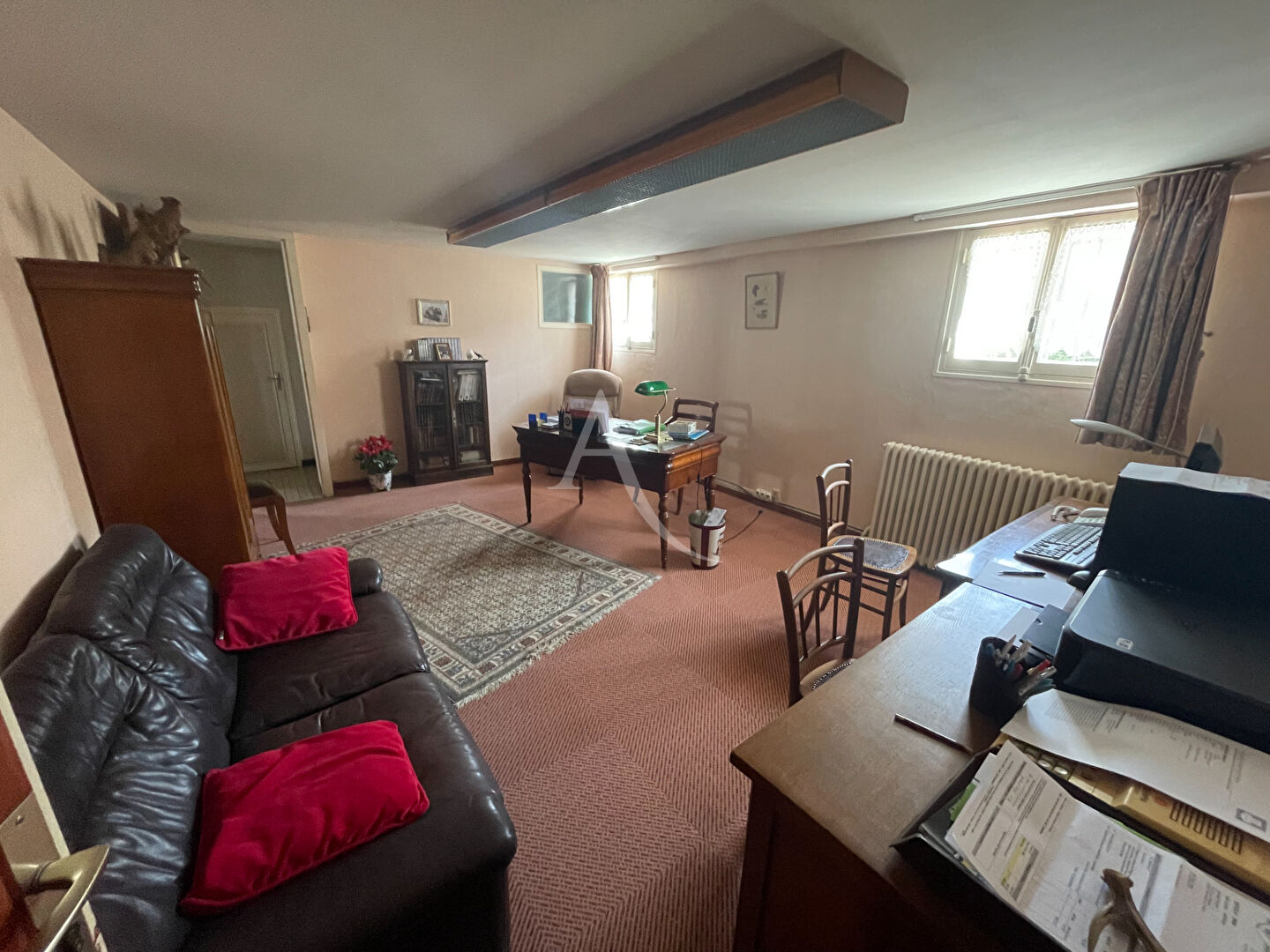 Comprenant au 1er étage : une entrée, un salon - séjour avec une cheminée insert, une cuisine aménagée avec une cheminée insert, une suite parentale, 2 chambres, un bureau, une salle de bains, un w-c et une buanderie.