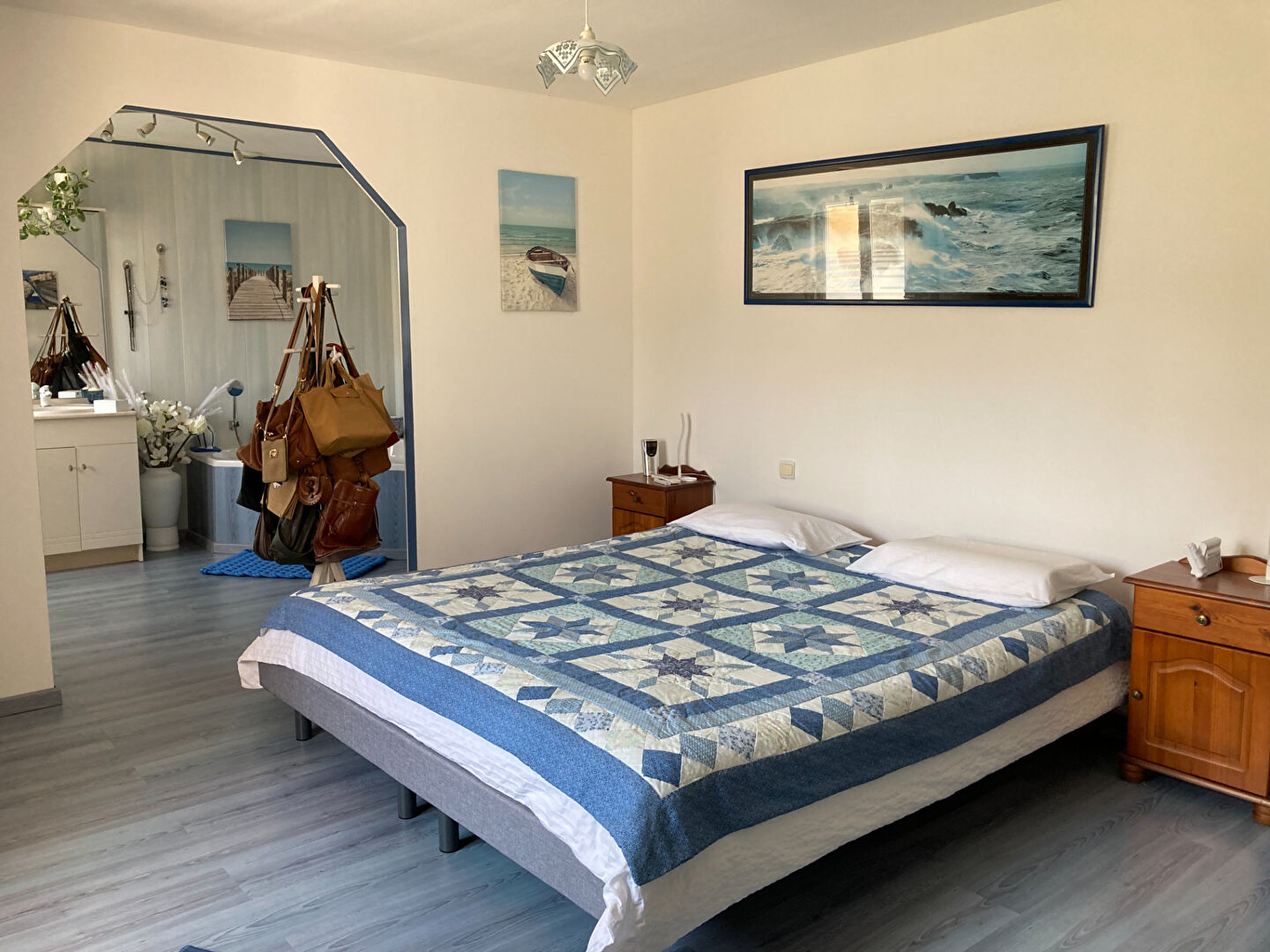 MAISON A VENDRE, à 5 km environ de la plage de SAINT BREVIN L'OCEAN et 5 km environ de SAINT PERE EN RETZ, maison de plain-pied en pierres, en parfait état, composée d'une entrée, salon séjour cuisine aménagée et équipée avec poêle à bois 63 m² environ, une suite parentale avec sdb / wc + placard, deux chambres, salle d'eau et wc, buanderie, une terrasse carrelée et couverte de 23 m², un hangar (avec un atelier de 29 m² + un garage camping car de 34 m² avec grenier pour rangement), un second atelier verrière de 23 m², un terrain de 530 m² environ puits pour arrosage extérieur.