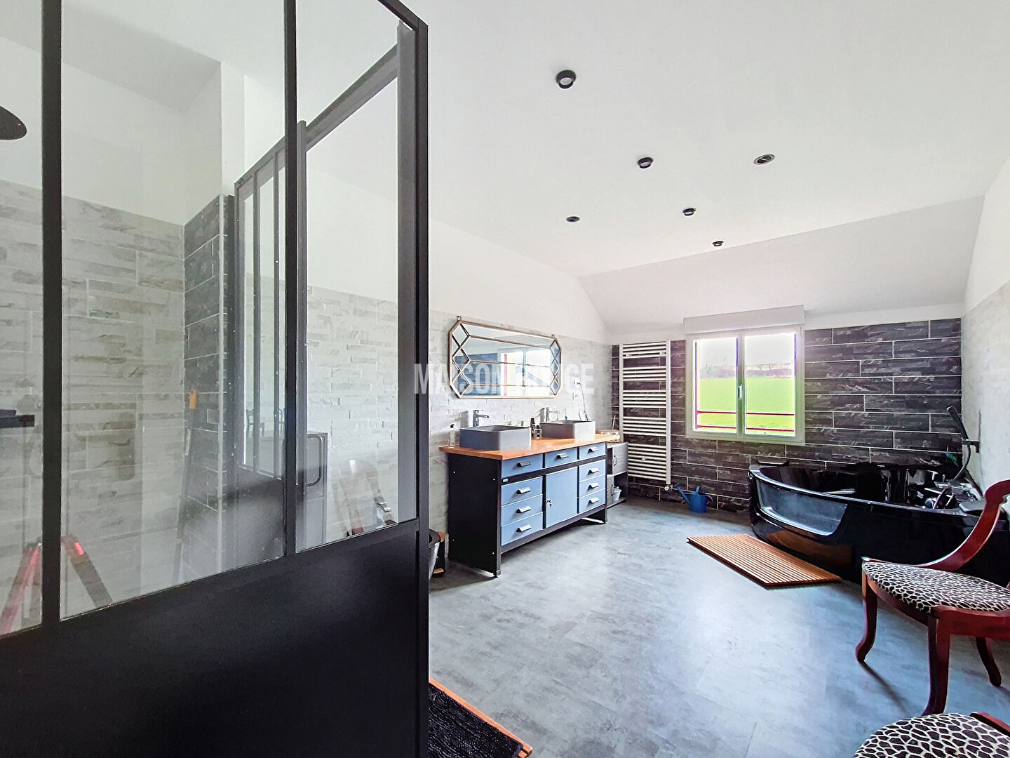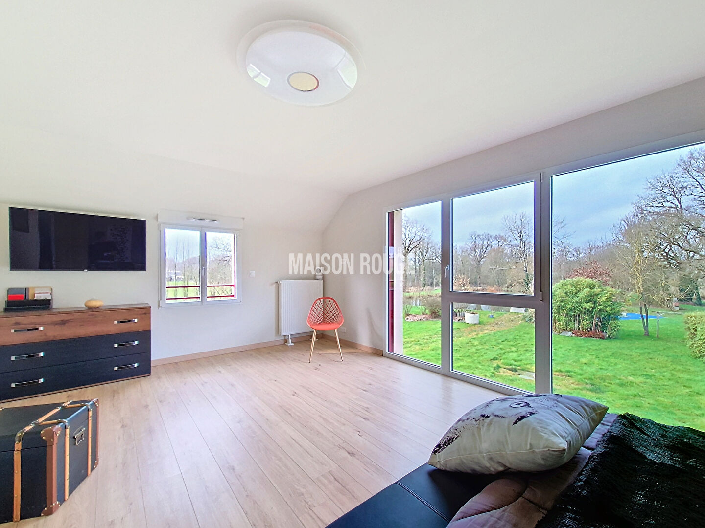 L'étage spacieux, avec sa mezzanine, permet d'imaginer de nombreuses activités, que ce soit pour se détendre devant un film ou pour jouer. A cela s'ajoute quatre belles chambres et une spacieuse salle de bains avec douche de 16 m².