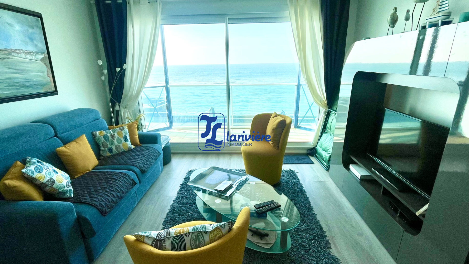 -séjour offrant une vue sur la mer, avec accès à un balcon exposé à l'ouest,