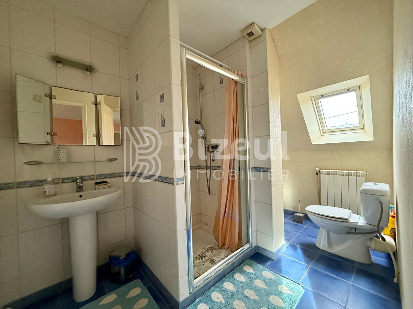 A l'étage : un grand espace mezzanine desservant deux chambres avec placards et une salle d'eau avec wc.