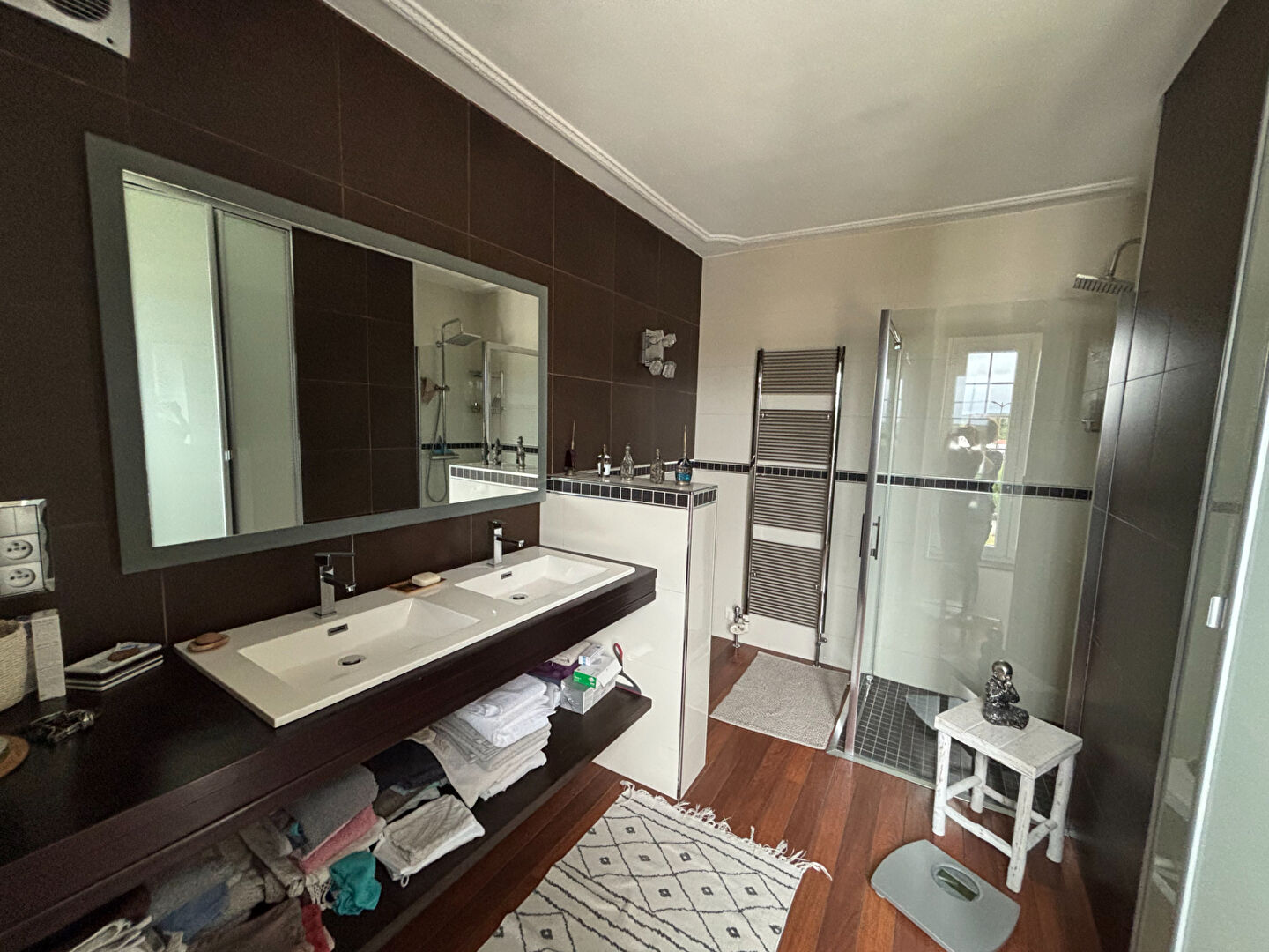 * le premier étage dessert 2 chambres dont l'une avec dressing et salle d'eau + une salle de bain sur l'étage;