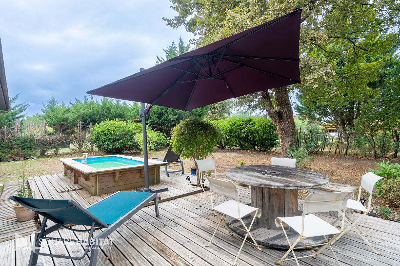 À l'extérieur, un écrin de verdure (chênes, magnolia) vous invite à la détente. Vous profiterez d'une agréable terrasse et d'une petite piscine en bois. Le tout équipé d'un puit foré, véritable atout pour l'entretien des espaces verts.