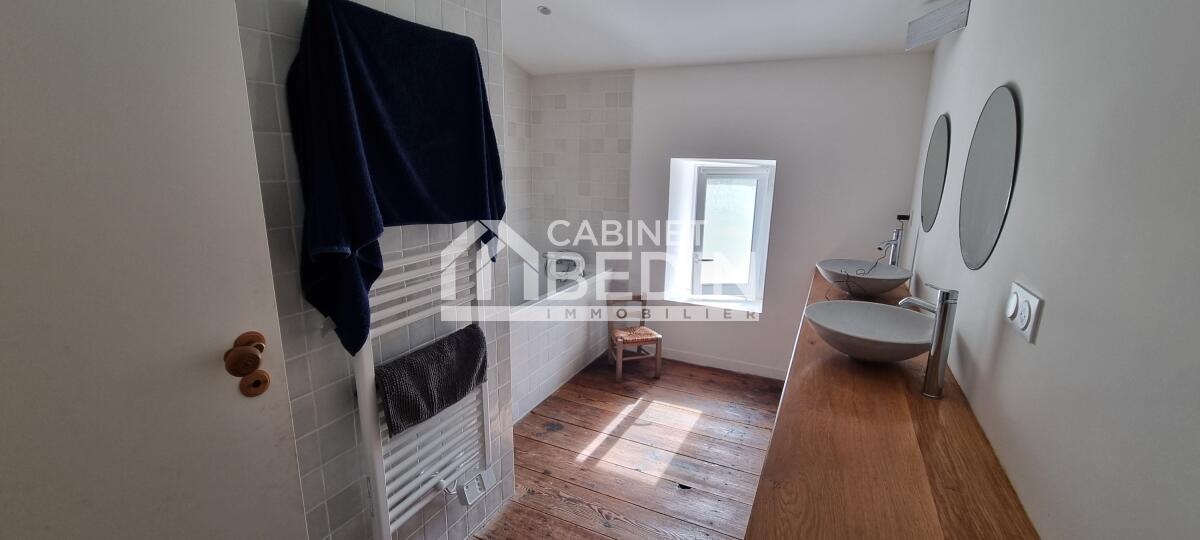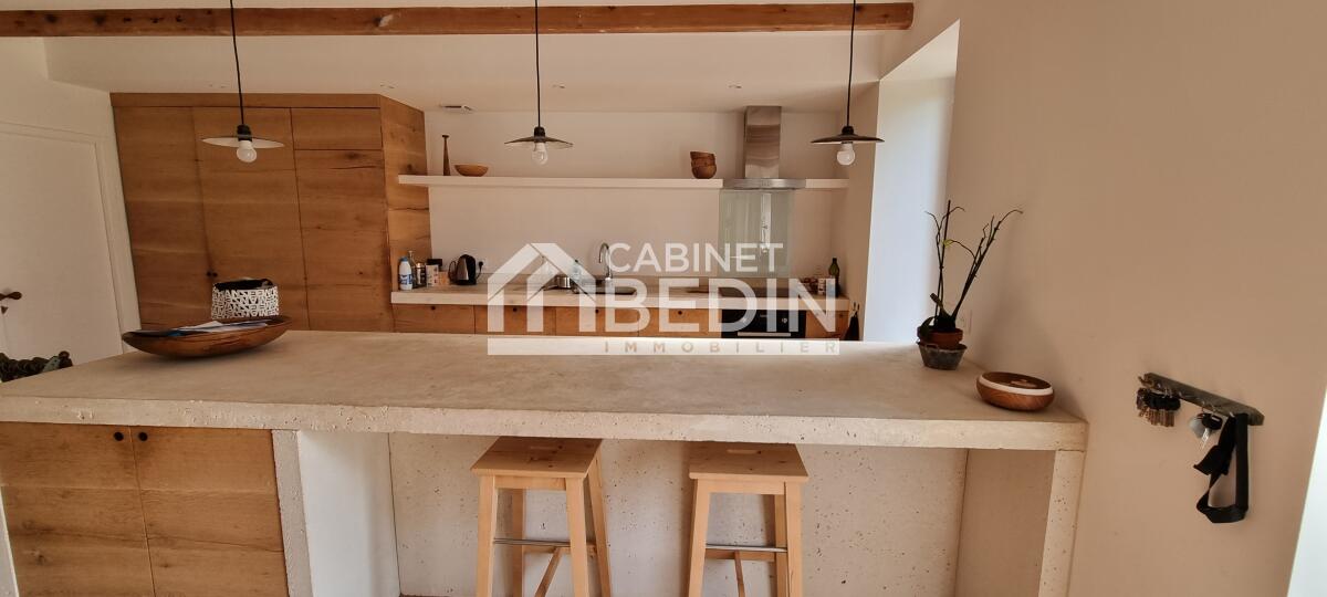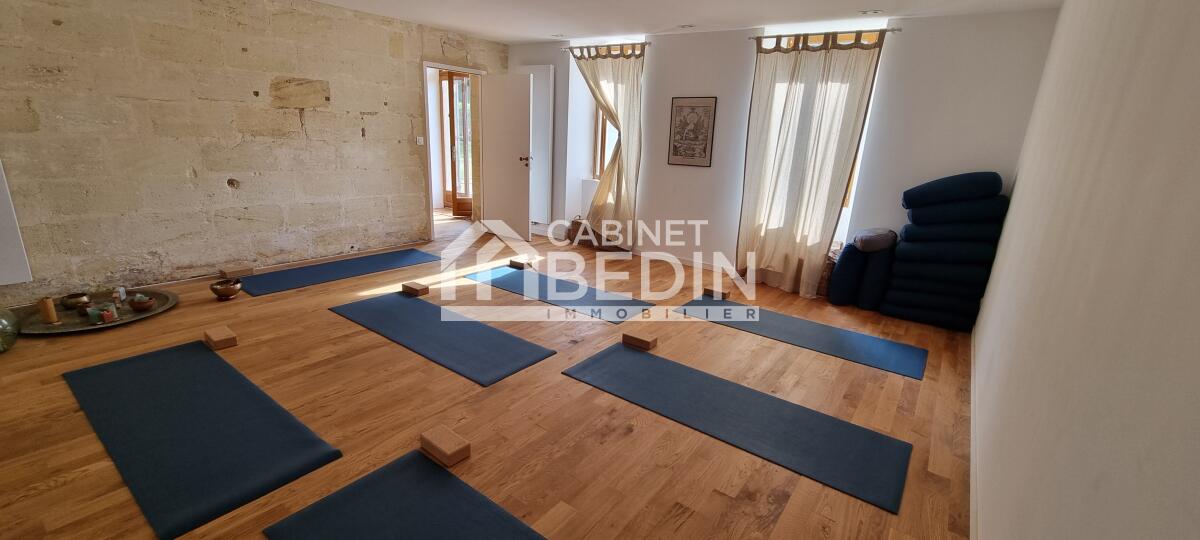 PROCHE BOURG SUR GIRONDE. Dans un écrin de verdure de plus de 6000 m², cette grande maison offrant le charme de la pierre et une rénovation actuelle vous attend : un spacieux espace à vivre avec cuisine équipée ouverte, salon, 4 chambres, bureau, 2 grandes pièces qui vous permettront de décliner des espaces pour des activités professionnelles ou agrandir des espaces en chambres supplémentaires, les dépendances offrent également un beau potentiel. . Les informations sur les risques auxquels ce bien est exposé sont disponibles sur le site Géorisques : www. georisques. gouv. fr. Montant estimé des dépenses annuelles d?énergie pour un usage standard : entre 1759 et 2379 Euros/an (année de référence 2023)