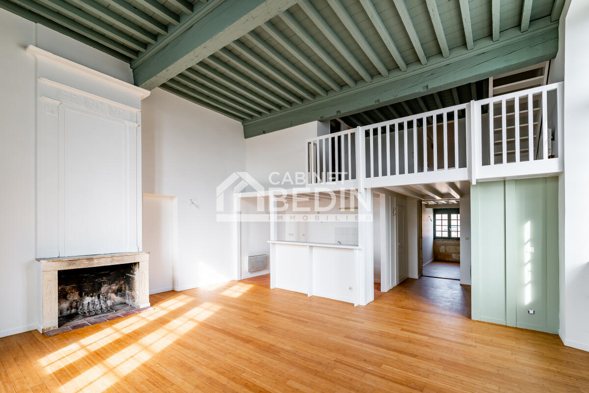 Exclusivité CABINET BEDIN - Triplex d?Exception 3 chambres . Bordeaux centre, au dernier étage d?un immeuble du XVIIe siècle, découvrez ce triplex lumineux d?environ 130 m² offrant une vue dégagée sur l?église Sainte-Croix. Il se compose d?un vaste séjour avec poutres apparentes et belle hauteur sous plafond, d?une cuisine à aménager, de 3 chambres dont une suite parentale nichée sous les toits avec dressing et salle d?eau, d?une mezzanine idéale pour un bureau, de 2 autres pièces d?eau et de WC séparés.