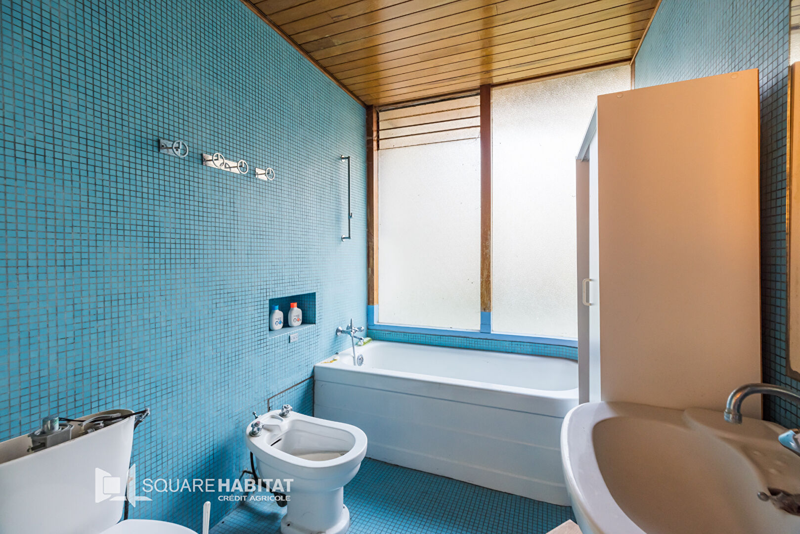 L'étage principal séduit par son séjour atypique de 56 m² conçu par l'architecte Roger Le Flanchec, une pièce à l'atmosphère singulière.